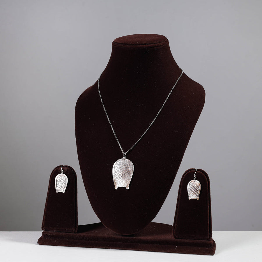 Brown handcrafted natural seashell necklace set. These unique mother of pearl shell necklace & earrings set are stunning and perfect for any occasion. These necklace sets are a great wardrobe staple and timeless in design. Mother of pearl jewelry and pearl jewelry look very different in a number of ways. Mother of pearl jewelry can have much larger focal pieces than pearls since the substance takes up a whole shell's interior. Mother of pearl is thin and slightly rounded.