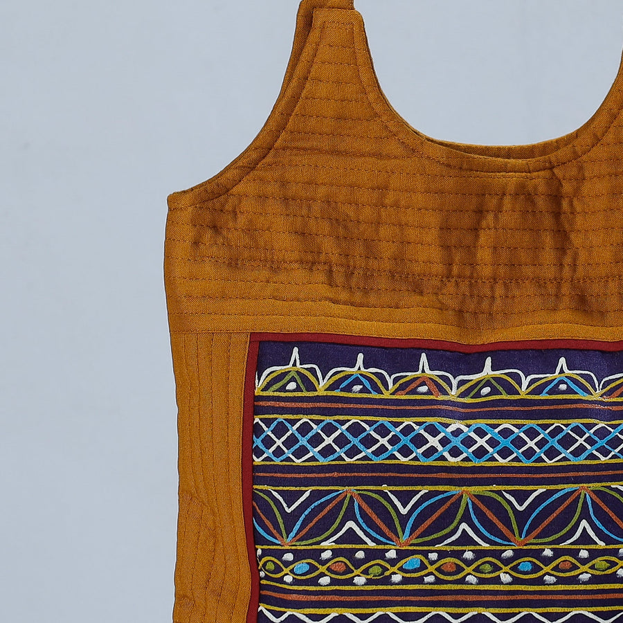 Fine quality mashru cotton with traditional orange rogan art hand-painted shoulder bag. It has two pockets with cotton fabric lining inside & one back side pocket, ample space to keep most of your essentials. Made by the master artisan Jabbar Khatri from Nirona in Kutch region of Gujarat.