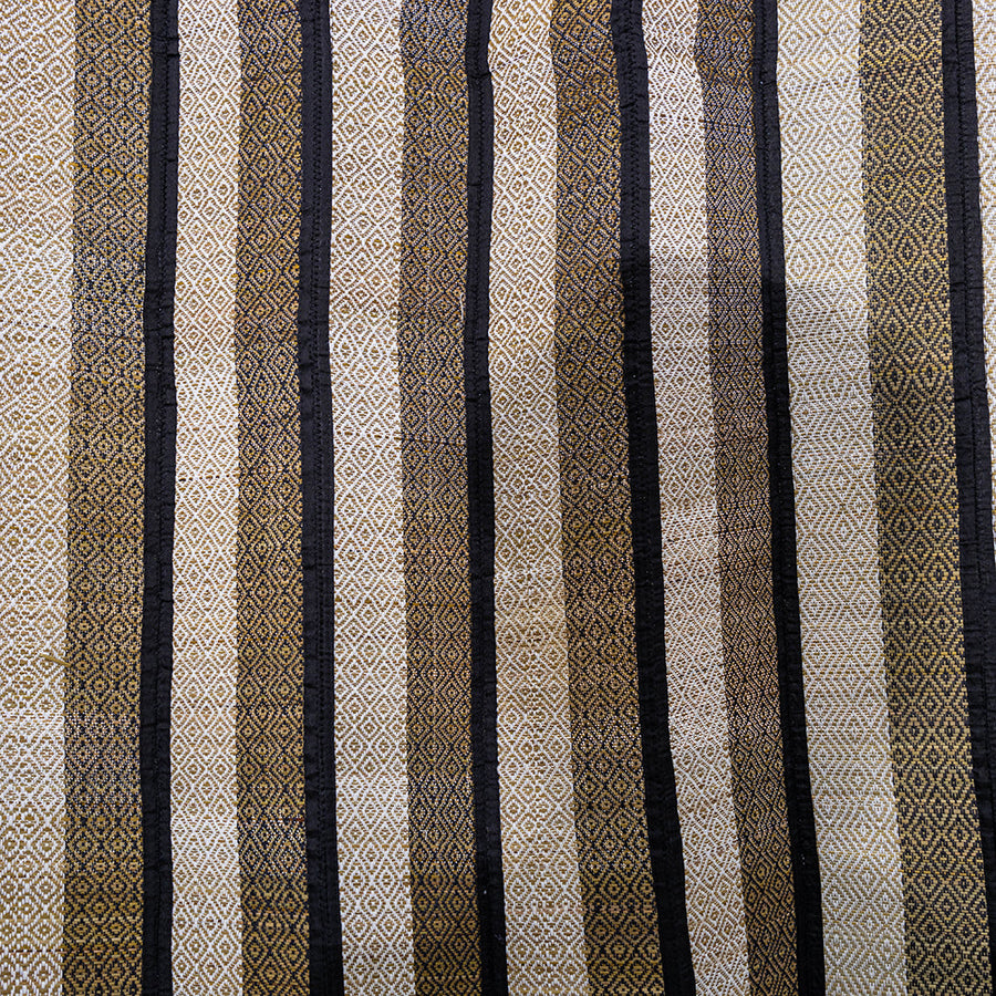 Working around seasonal grasses and traditional colours this handcrafted golden grass weaved curtain is made with natural madur grass, twisted cotton yarn & madur kathi reed (Cyperus tegetum and C. Pangorie) that grows in the swampy area around Midnapore in West Bengal. The craft of "Madur" weaving is practiced in the residence cum workshops of artisans households with the help of family members.