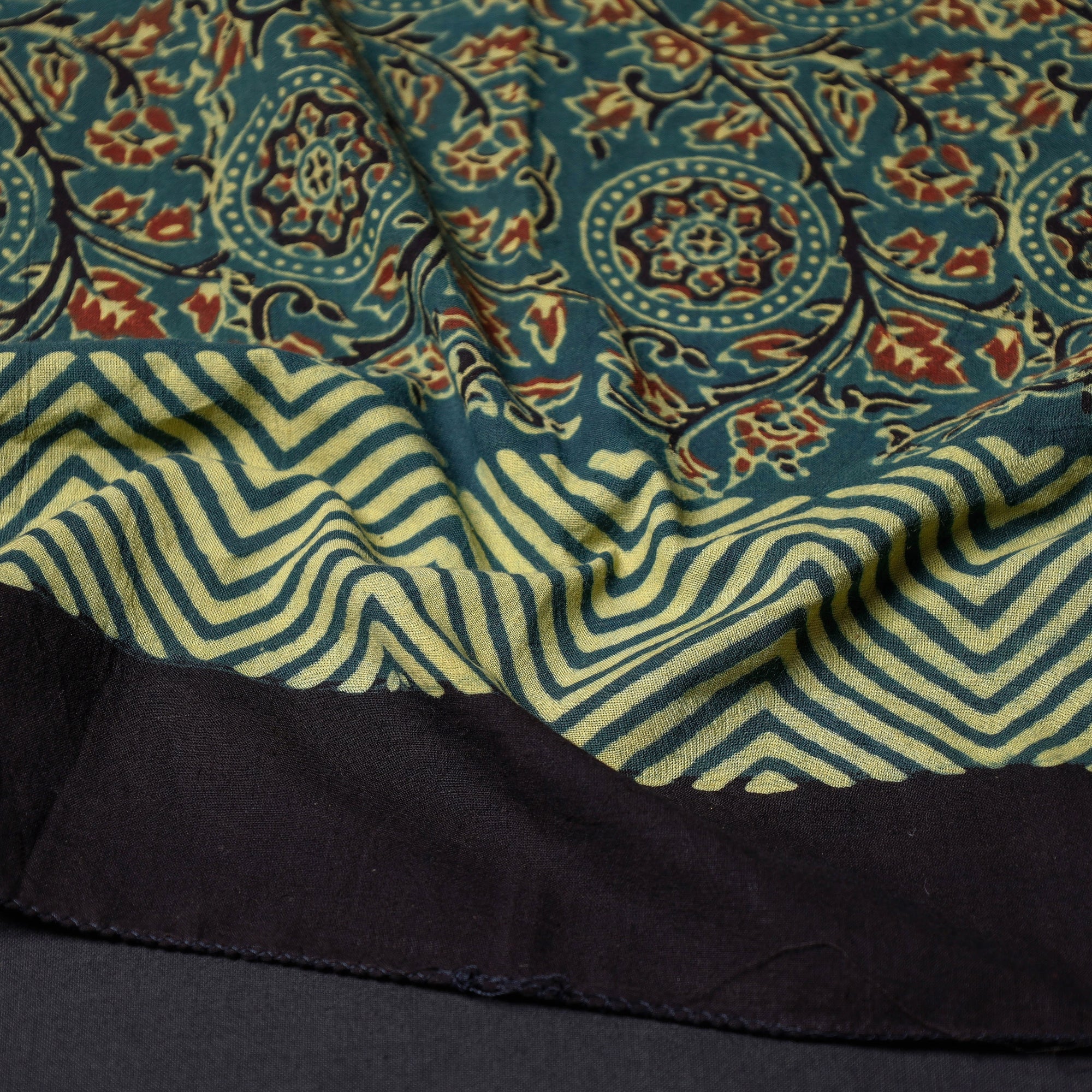 | Material | Fine quality green ajrakh hand block printing cotton scarf, made using natural dyes through traditional technique of hand block printing by master artisans in Kutch region of Gujarat. |