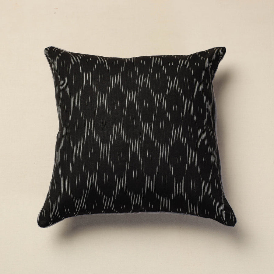 Fine quality black pochampally ikat cotton cushion cover, made from ikat cotton fabric on front side and plain matching cotton fabric on back side. Ikat has lovely patterns in extremely beautiful colours. Ikats are world famous for their colours, texture and designs.
