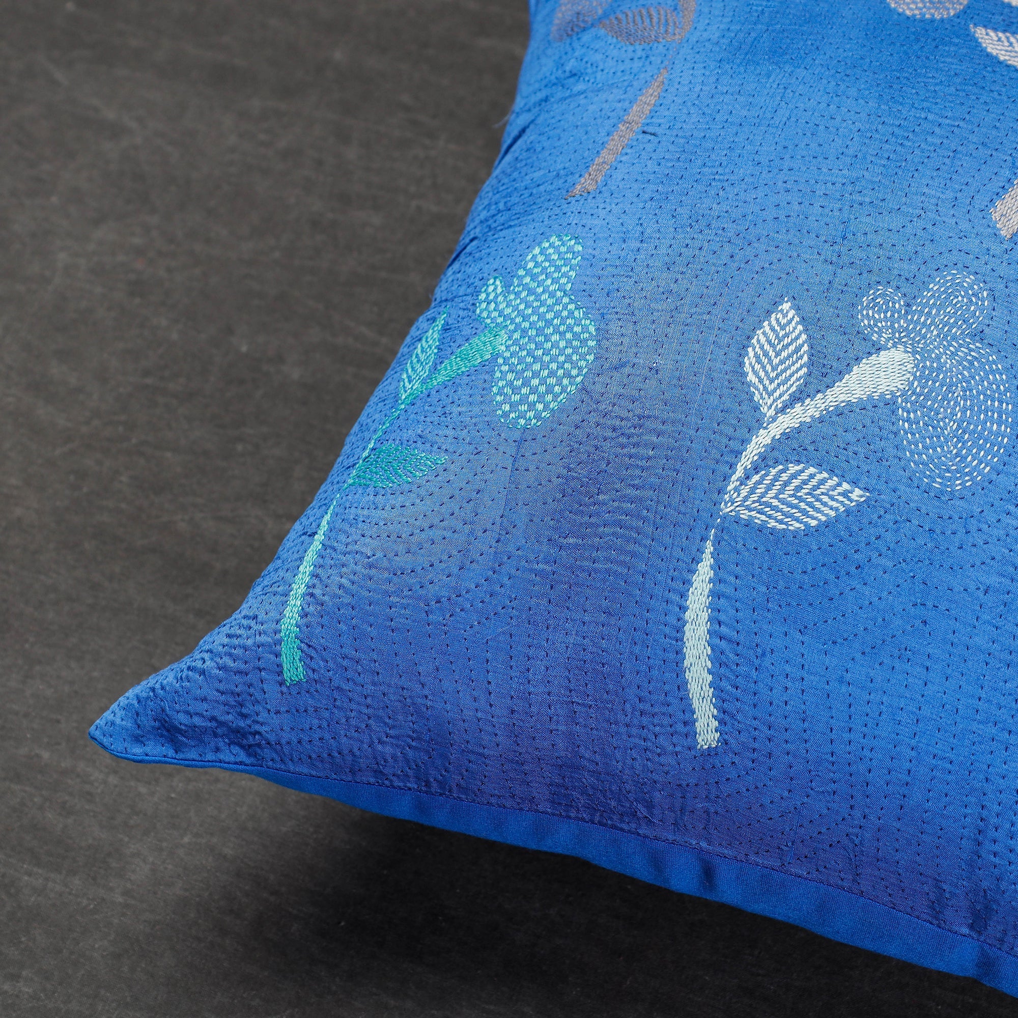 Fine quality kantha hand embroidery cushion cover made from pure mulberry silk fabric on front side and cotton fabric on backside. Designed with contemporary patterns & has been hand embroidery using West Bengal's traditional craft technique of Kantha.