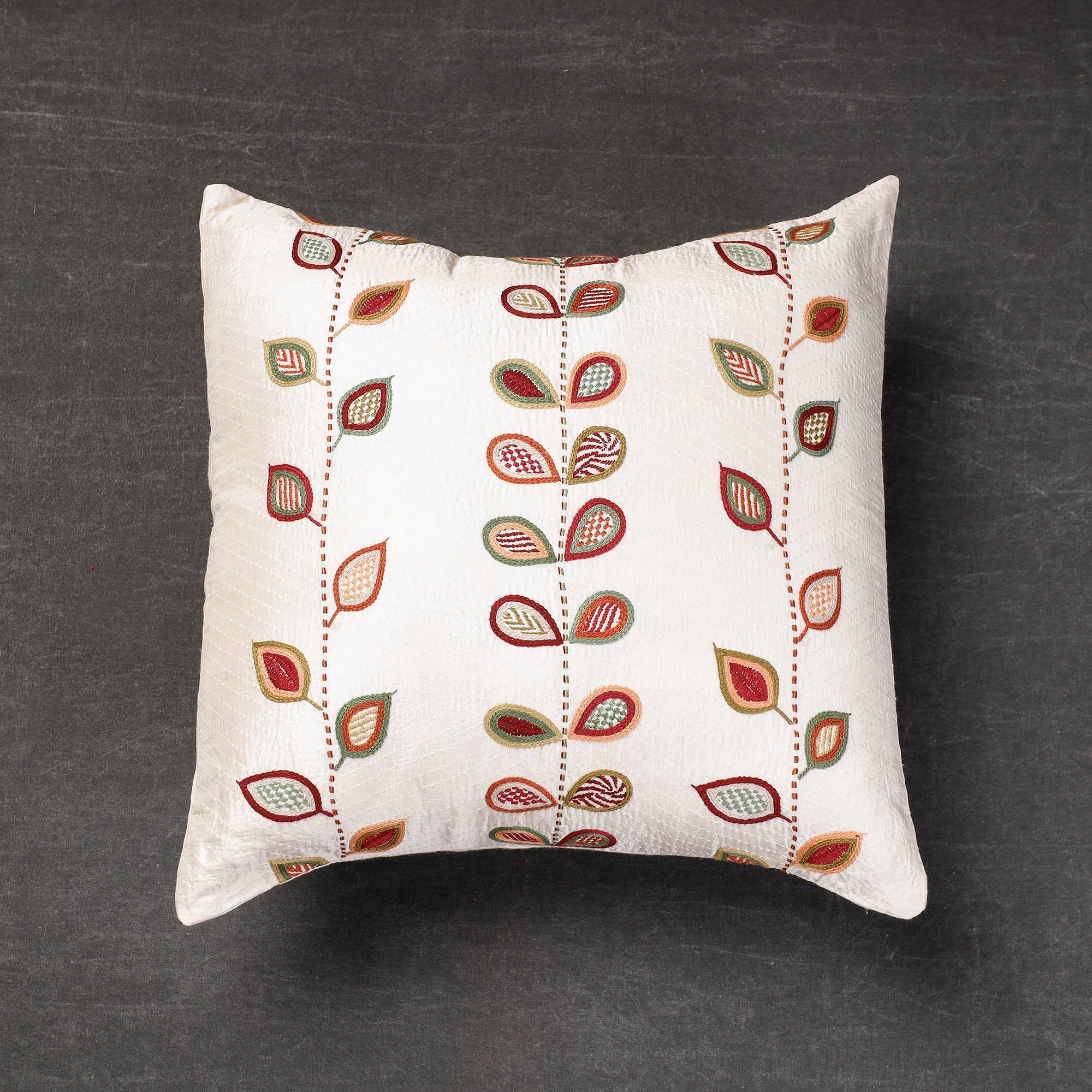 Fine quality kantha hand embroidery cushion cover made from pure mulberry silk fabric on front side and cotton fabric on backside. Designed with contemporary patterns & has been hand embroidery using West Bengal's traditional craft technique of Kantha.