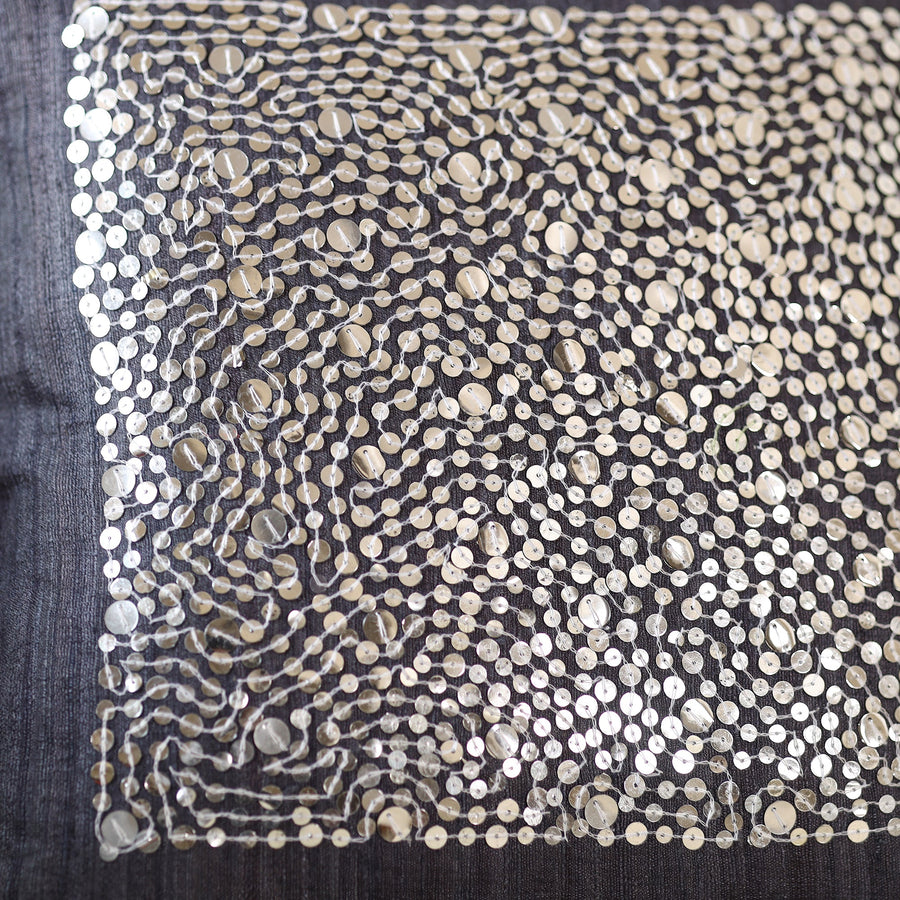Handcrafted aari hand embroidery sequin work pure handloom ghicha silk cushion cover, made by master artisans of Chhattisgarh.