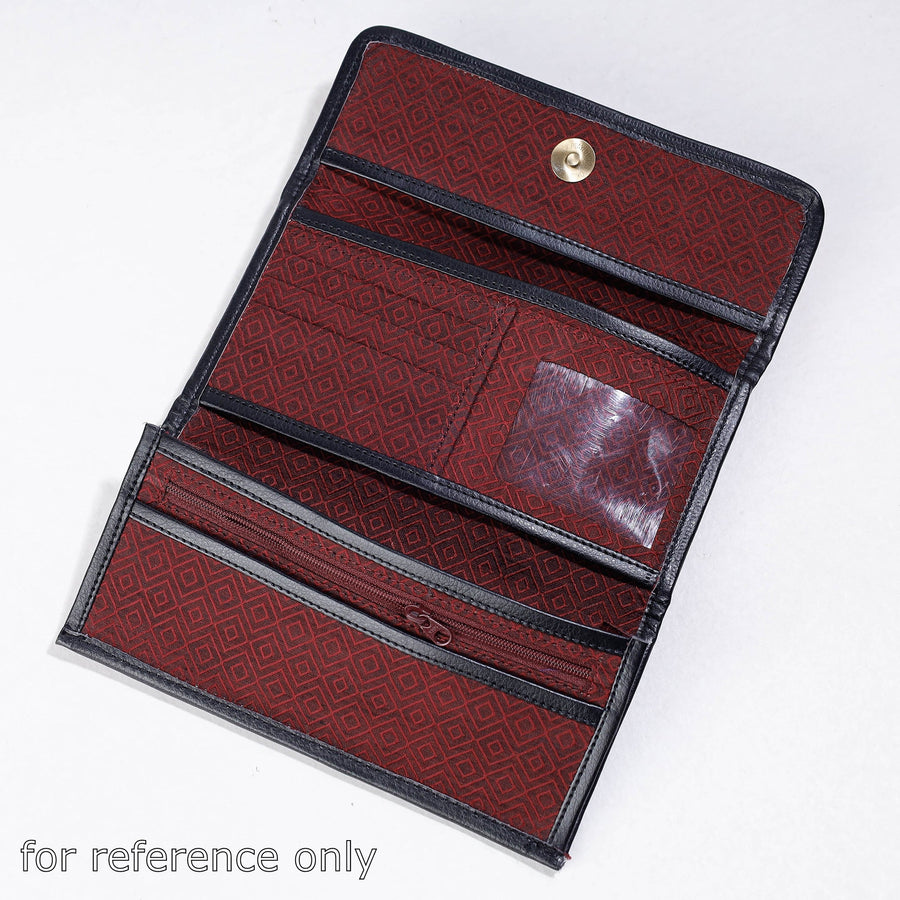 | Material | Fine quality handpainted green kalamkari natural dyed cotton clutch/wallet. It has one zipper, five simple pockets & five card slots inside and one pocket at backside. This exquisite clutch is created with handpainted kalamkari work, wherein the "Bamboo kalam" is used for free hand drawing of the subject and filling in the colours. It is entirely hand worked using natural colours. |