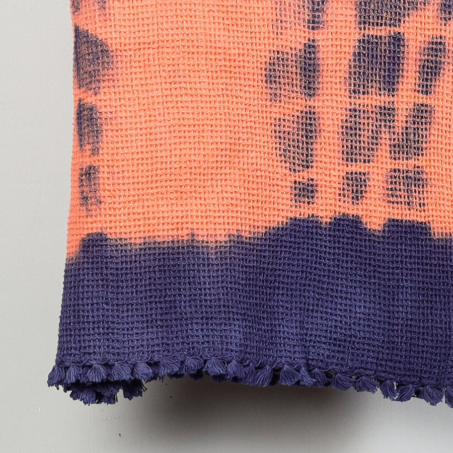 Fine quality pure handloom tye-dye cotton towel & napkin set, made by master artisans of Chhattisgarh. This towel & napkin set is hand dyed using tie and dye technique in which the fabric is tied using clamp or stitches in the required design and the pattern is dyed.
