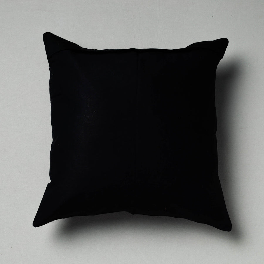 Tribal design hand stitched black pipli applique work cushion cover made from pure cotton fabrics, handcrafted by artisans of Pipili, the hub of traditional art & craft in Odisha.