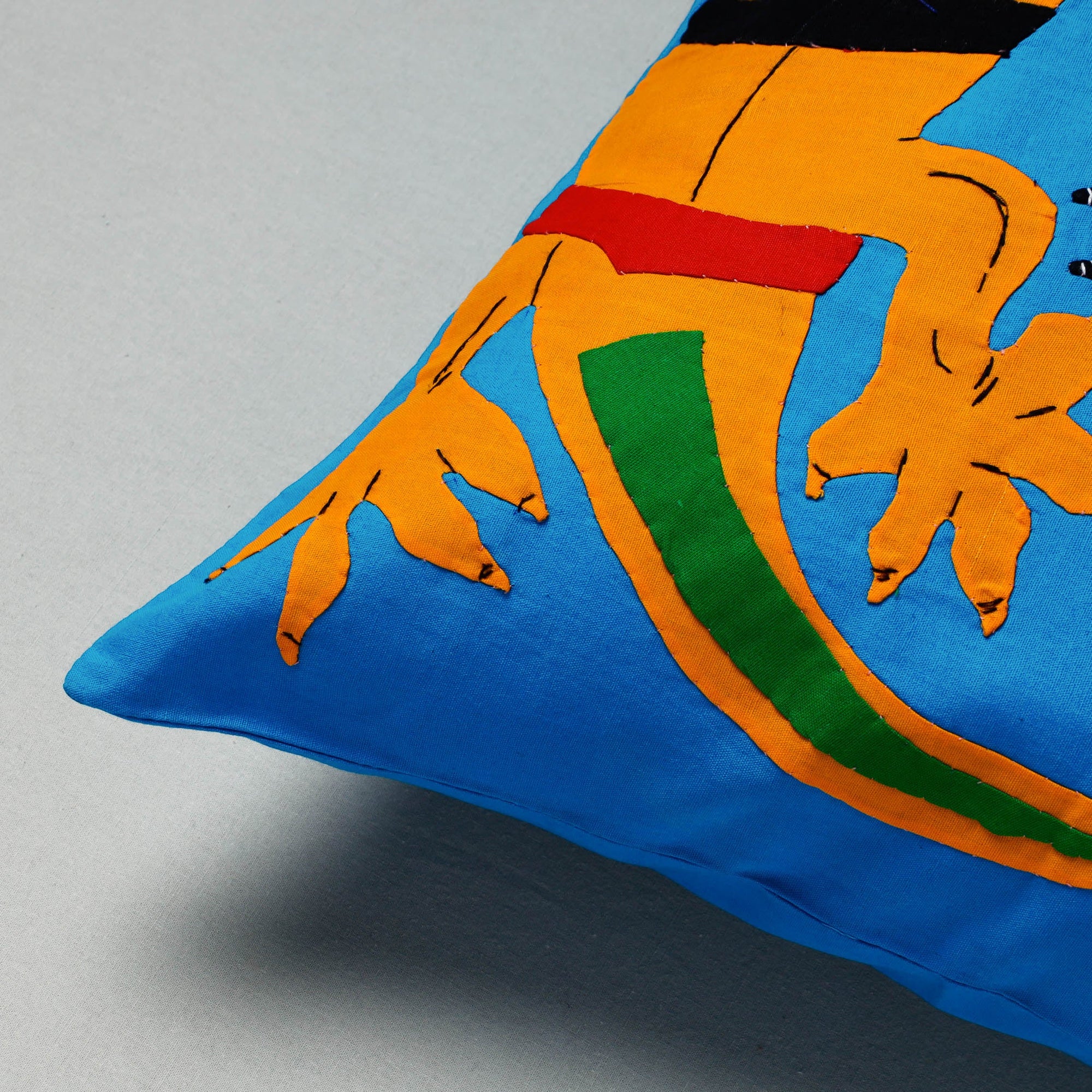 Tribal design hand stitched pipli applique work cushion cover made from pure cotton fabrics, handcrafted by artisans of Pipili, the hub of traditional art & craft in Odisha.