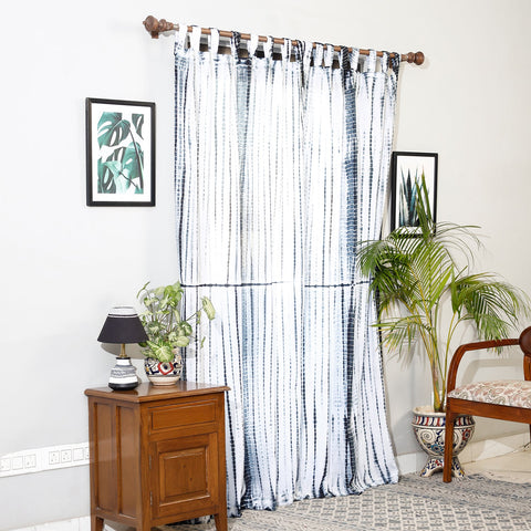 Add an ethnic feel to any room in your house by adding this shibori tie-dye pure cotton door curtain with tie-backs. This curtain is hand dyed using shibori tie and dye technique in which the fabric is tied using clamp or stitches in the required design and the pattern is dyed.