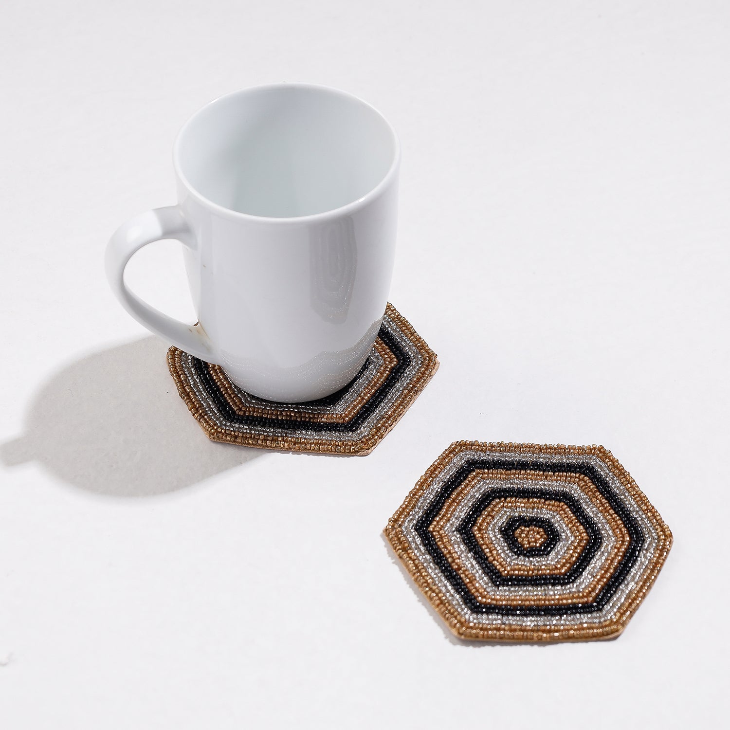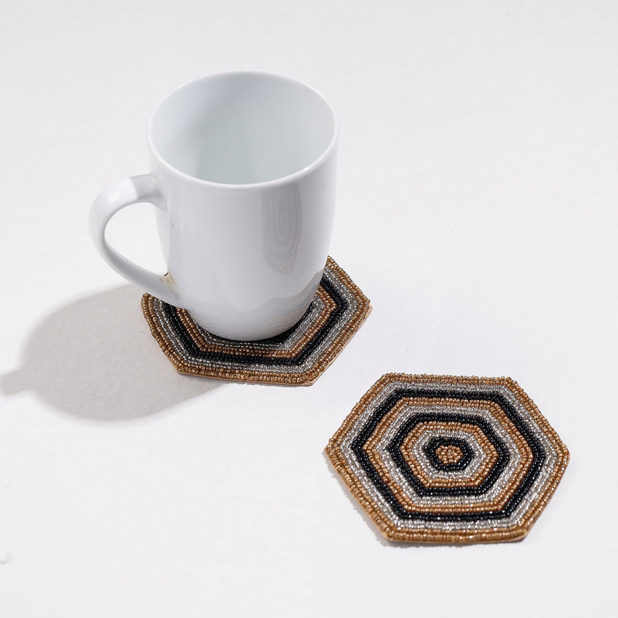 Beadwork coasters handmade using glass beads with cotton fabric from Hapur.