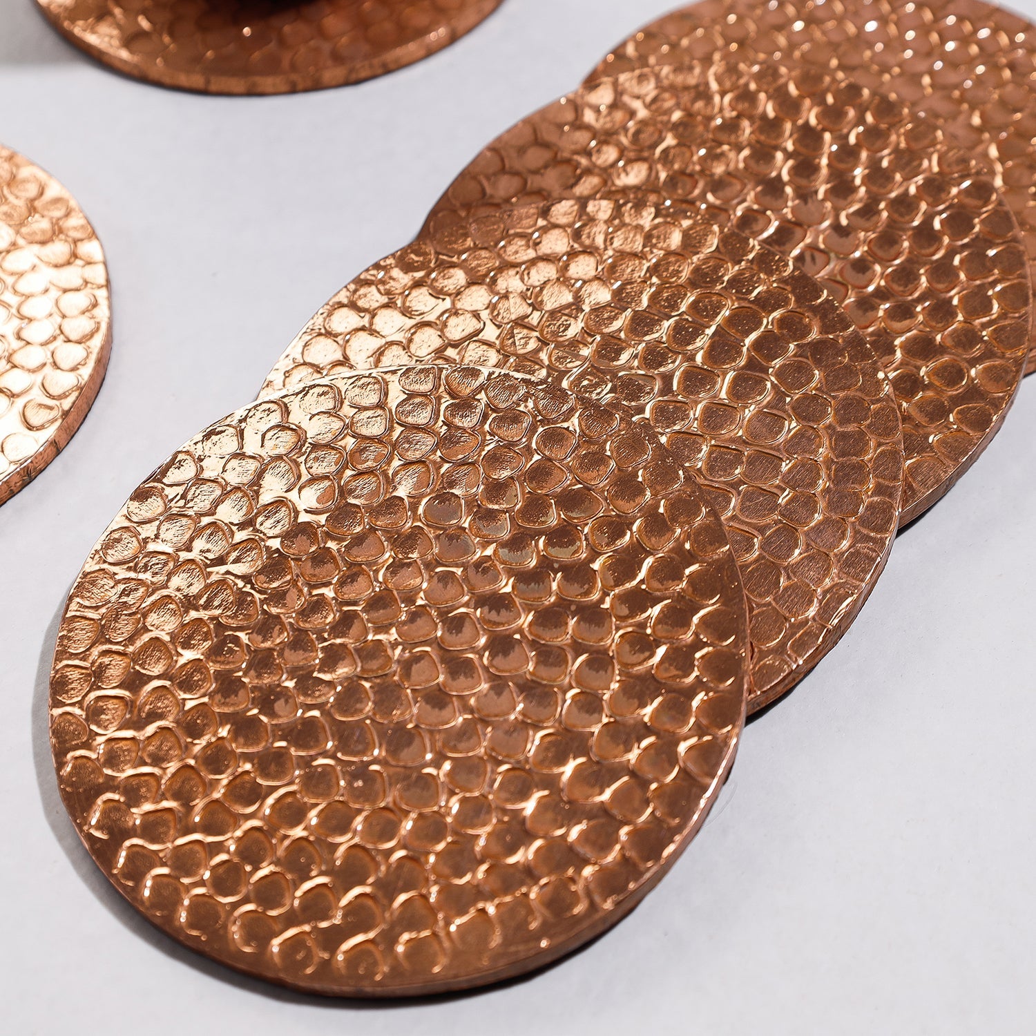 Handcrafted papier mache metal coated coasters. Raw Material used *The basic raw material for this craft which is used to prepare is paper pulp, metal sheet and edible glue. These attractive coasters are hand crafted from papier mache and metal by skilled artisans of Rampur.