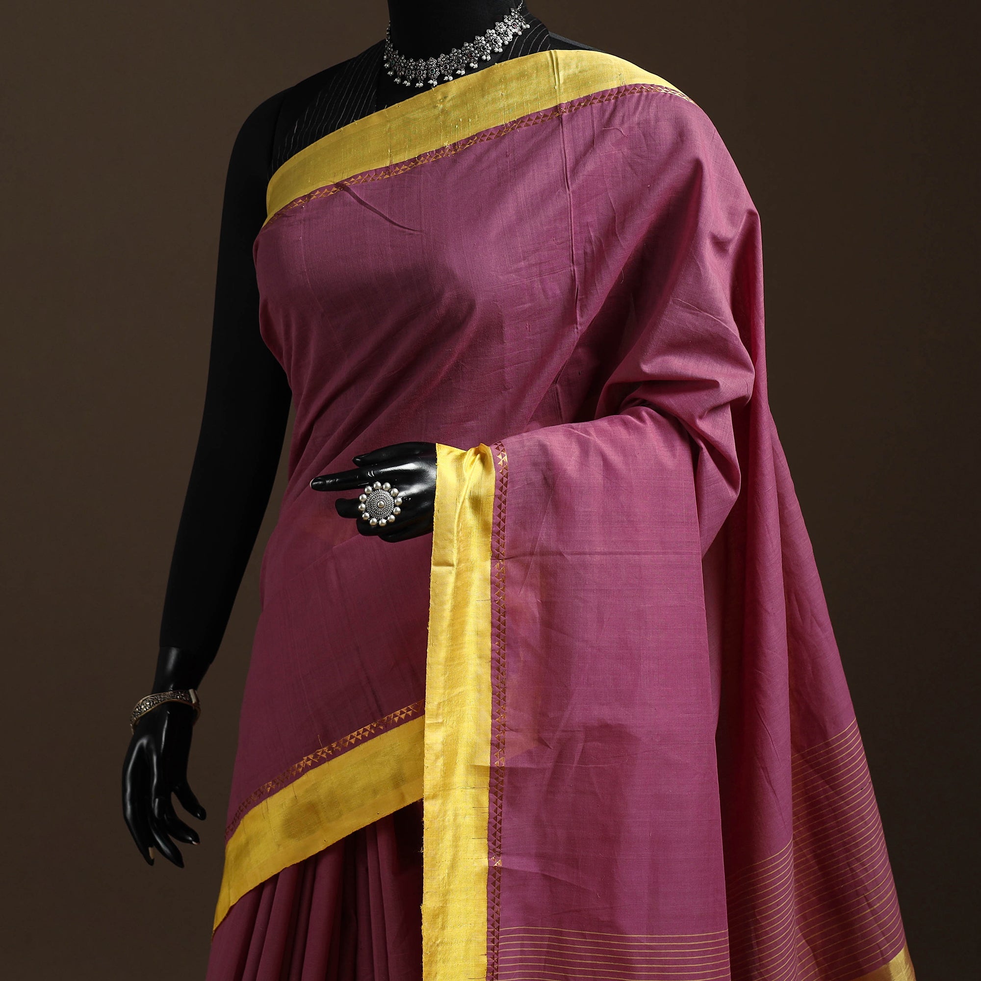 This fine purple Kuppadam handloom cotton saree features a beautifully woven design inspired by traditional Andhra Pradesh craftsmanship. Its detailed pattern and classic Kuppadam borders create an elegant drape suitable for everyday wear or special occasions. The soft cotton fabric ensures comfort, while the rich weave and vibrant colours make it a timeless addition to any wardrobe.