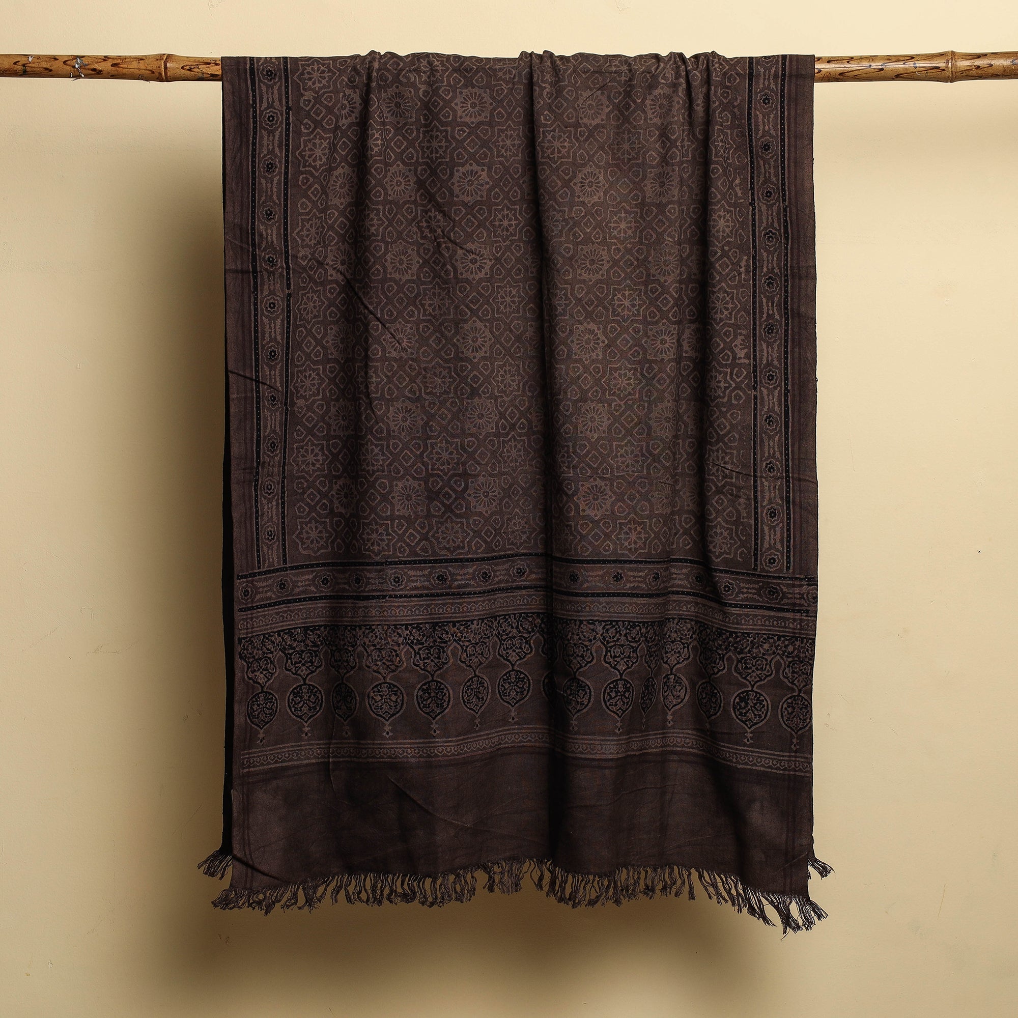 Brown - Ajrakh Hand Block Print Natural Dyed Cotton Handloom Towel 25