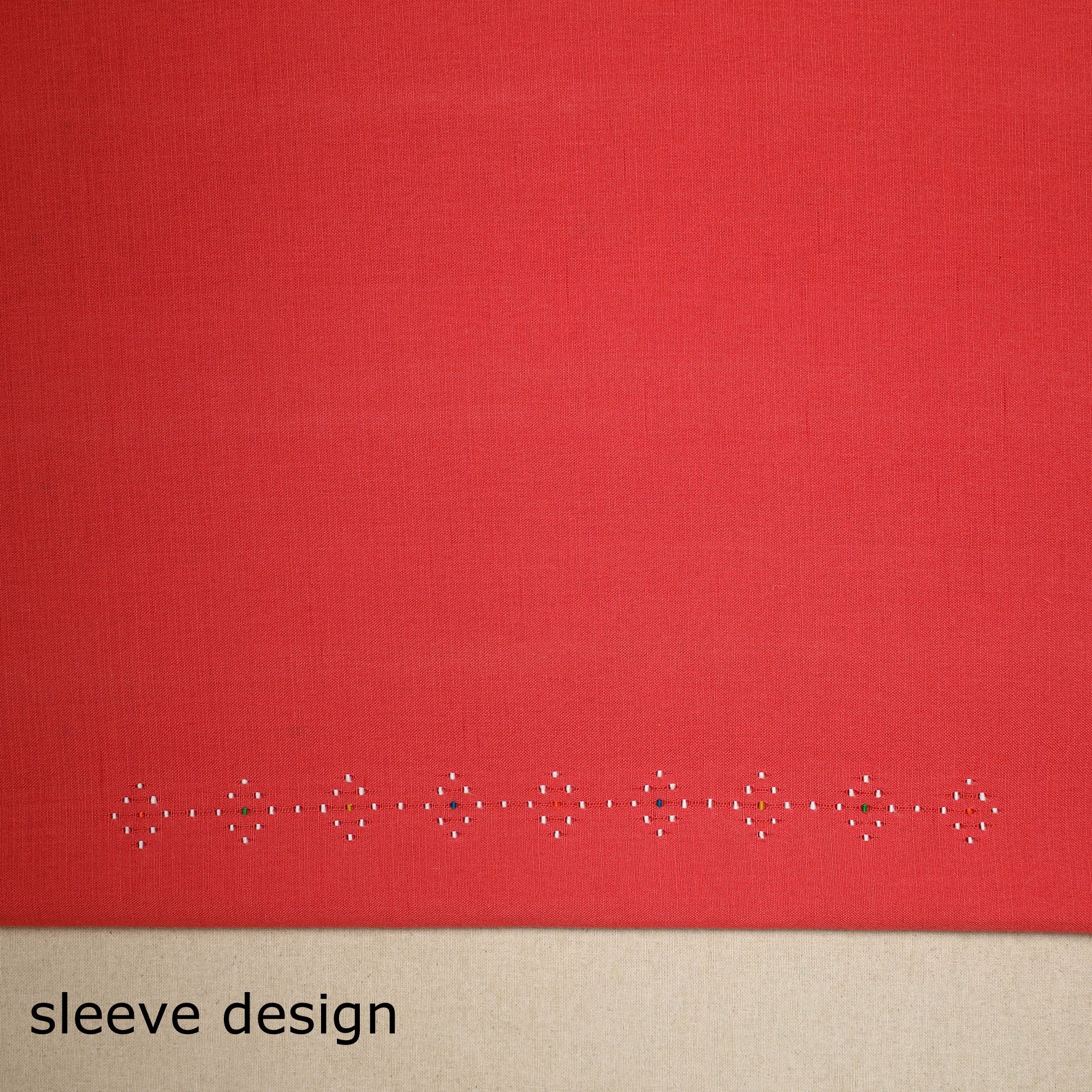 Fine quality handwoven pure cotton kurta material made using a weaving technique called tangaliya. Tangaliya weaving, also known as Daana weaving is practiced in Surendranagar district of Gujarat. Mainly practiced by the Dangasia community, this form of weaving requires high skill level and an eye for accuracy. Tangaliya is a labor-intensive and painstaking process. Tiny dots of extra weft are twisted around a number of warp threads, giving an effect of bead embroidery to the fabric.
