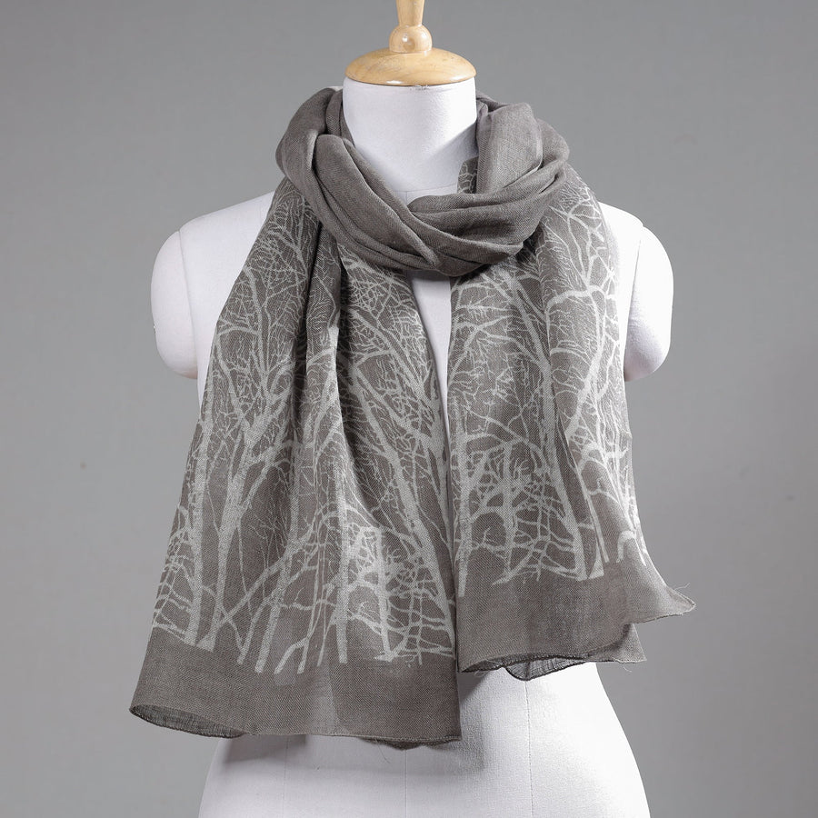 Grey -Handloom Block Art Print Natural Dyed Linen Bindaas Stole