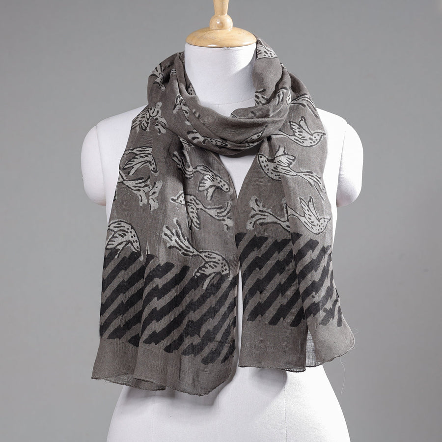 Grey - Handloom Block Art Print Natural Dyed Linen Bindaas Stole