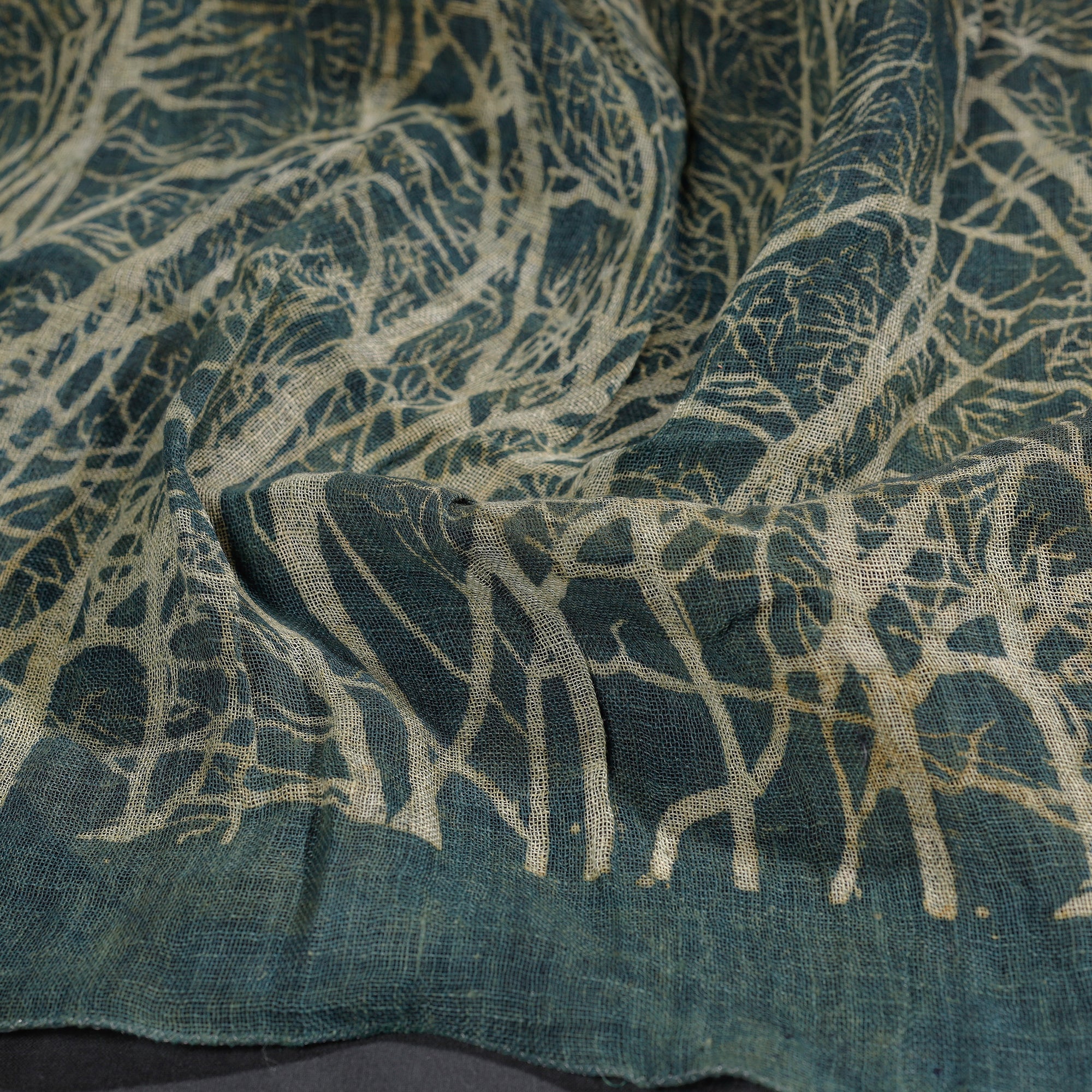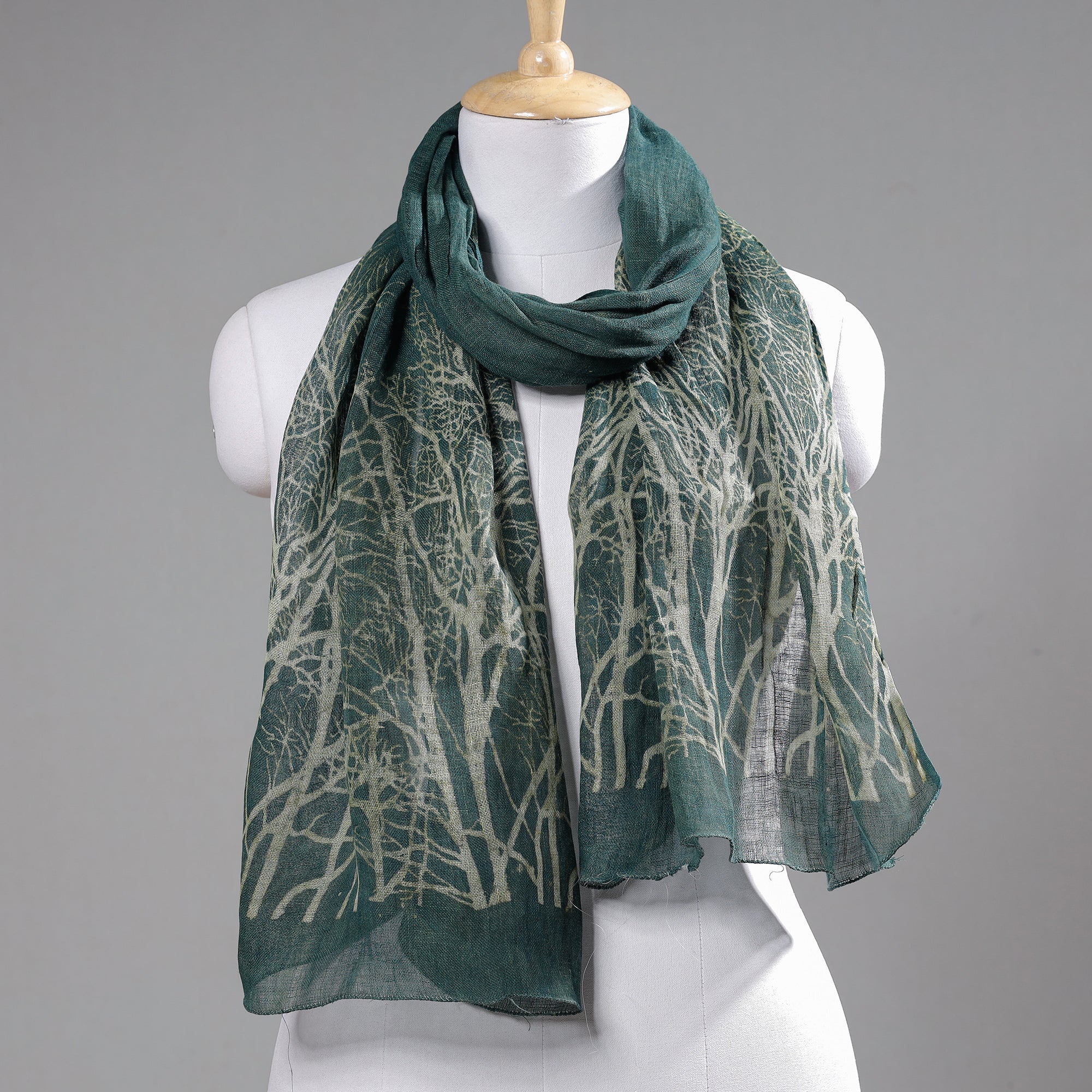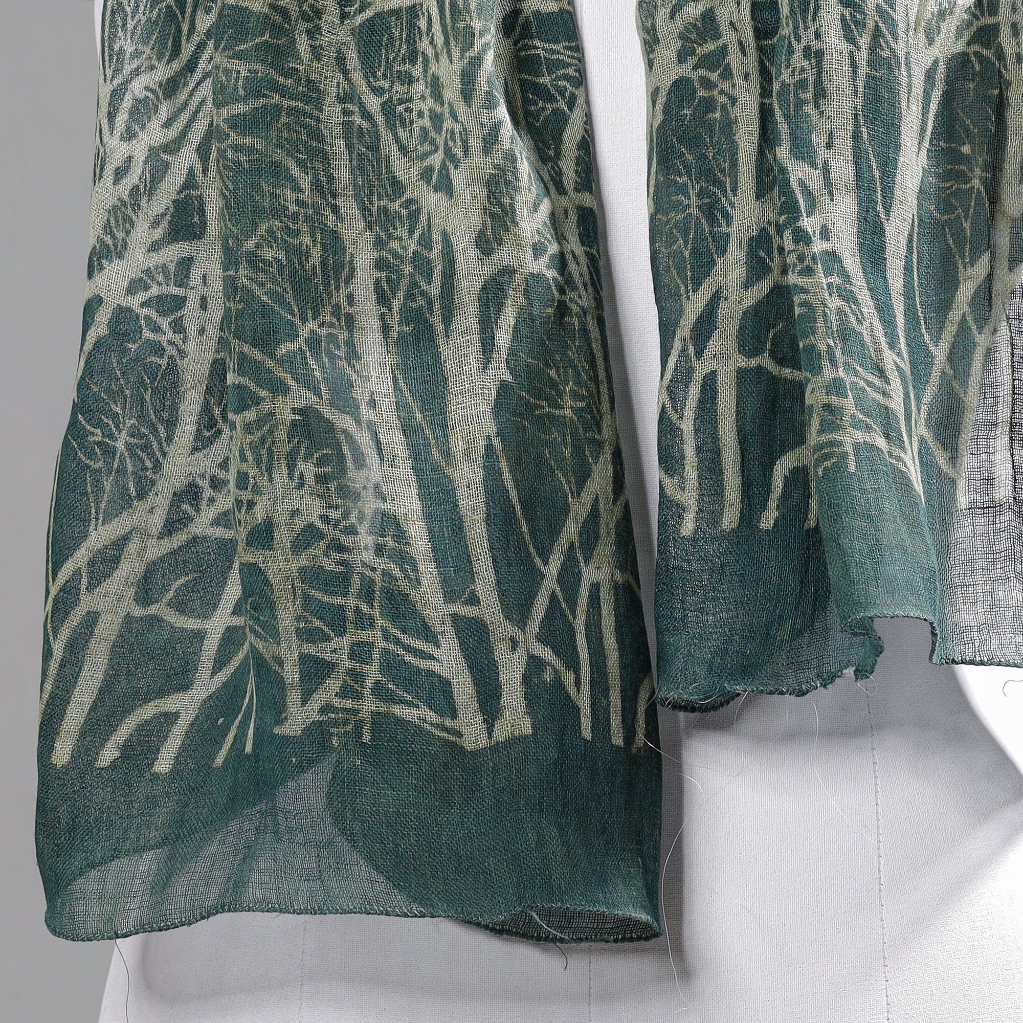 Green - Handloom Block Art Print Natural Dyed Linen Bindaas Stole