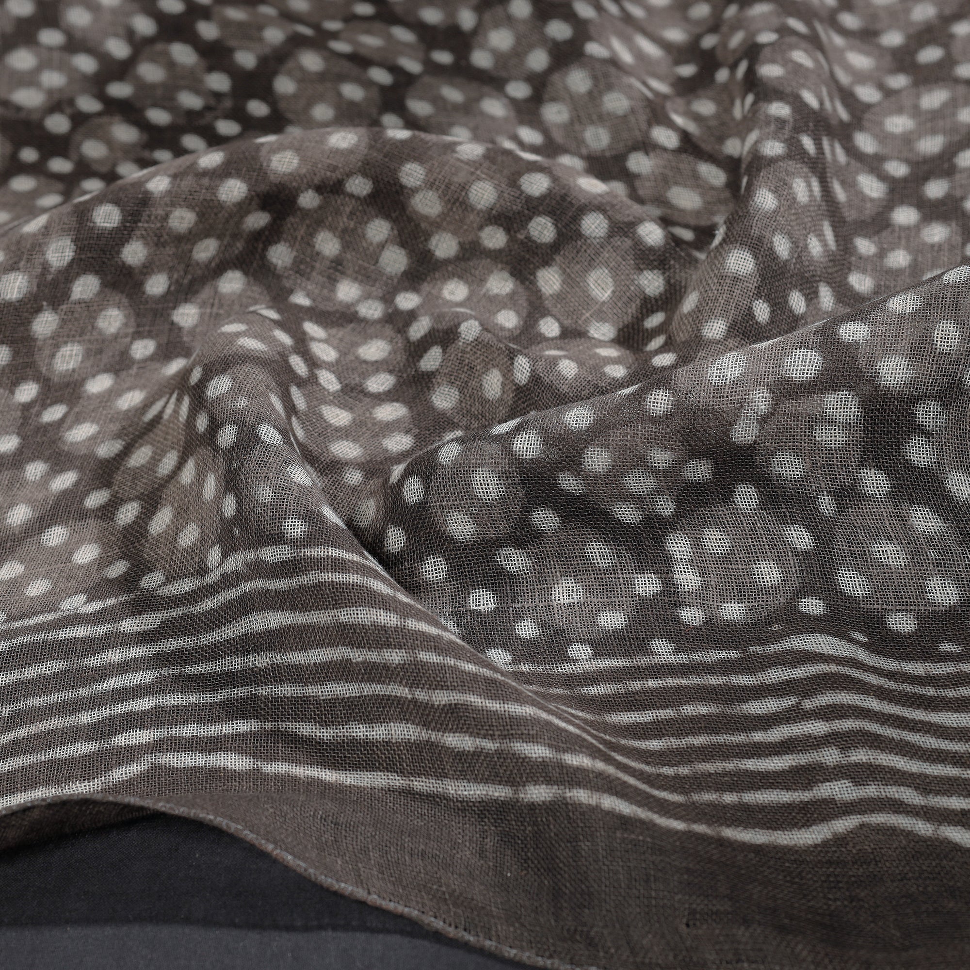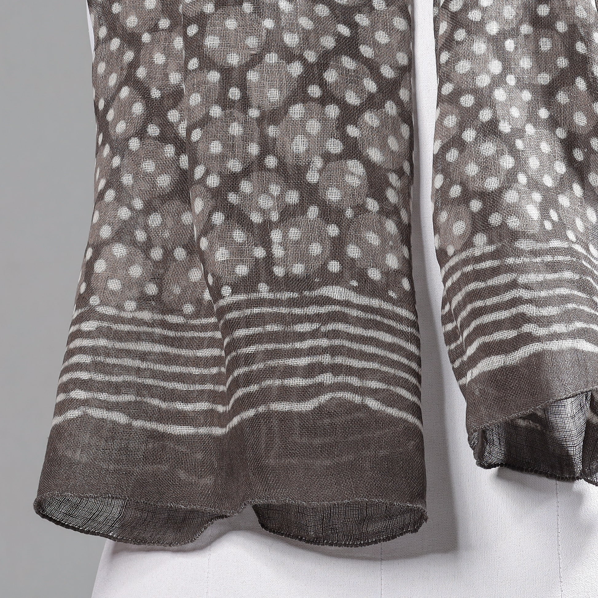 Brown - Handloom Block Art Print Natural Dyed Linen Bindaas Stole