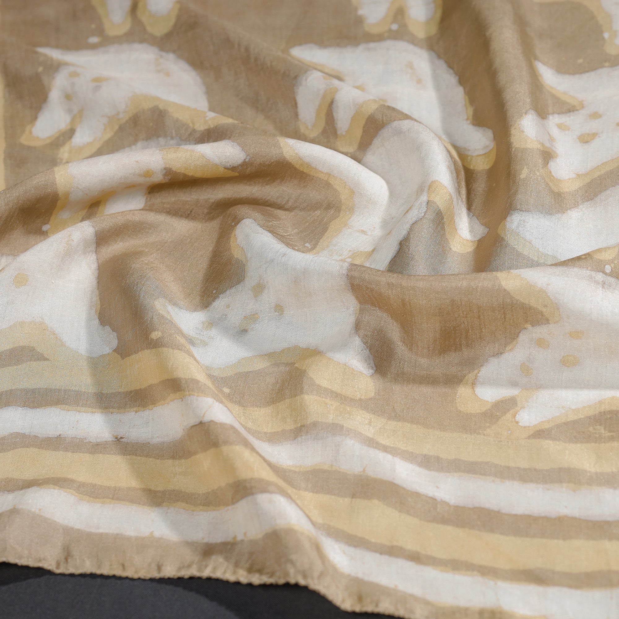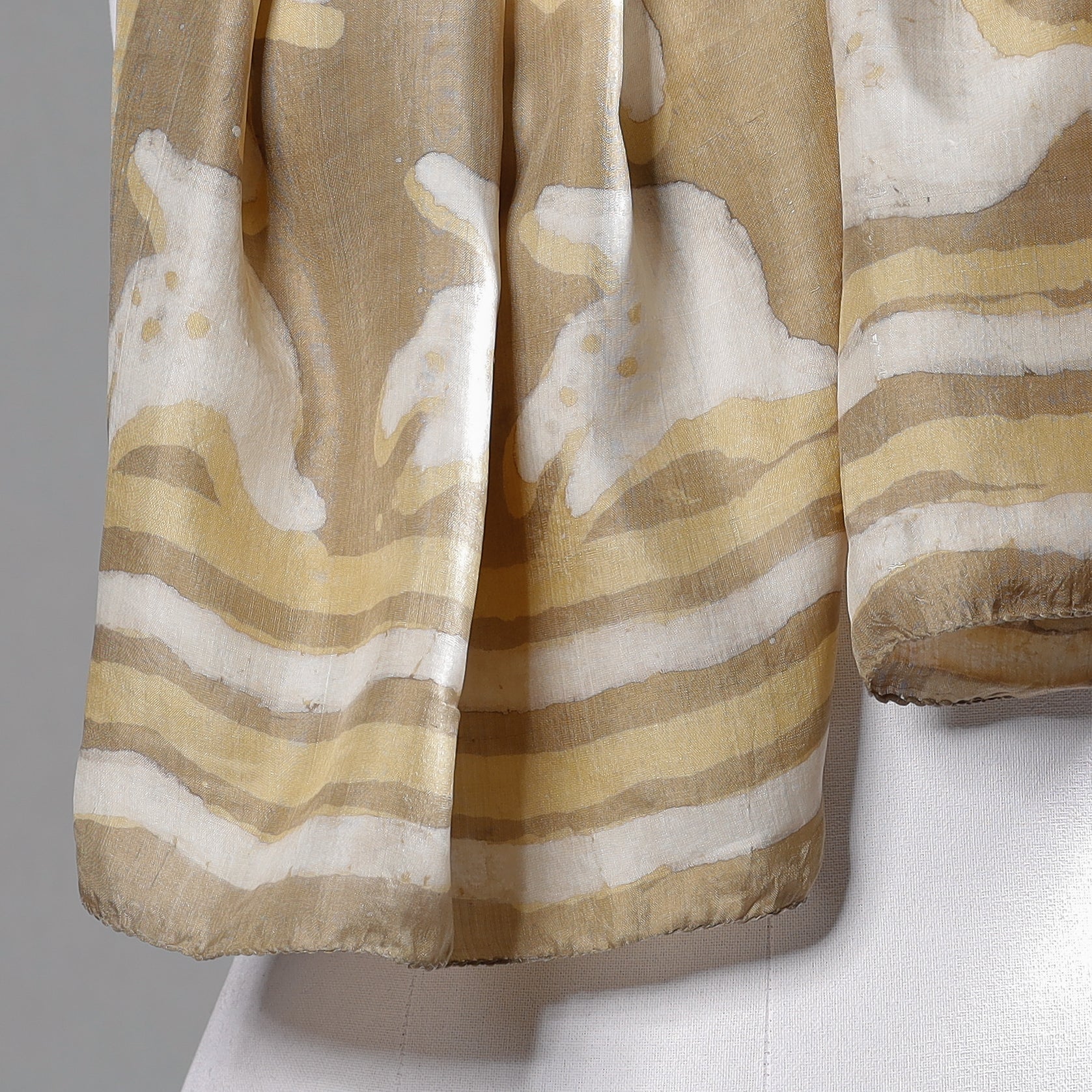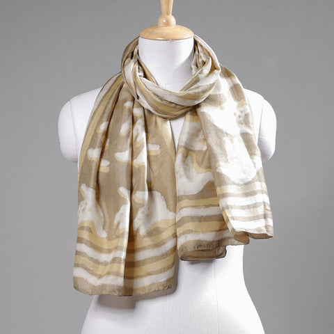 Beige - Handspun Block Art Print Mulberry Silk Bindaas Stole