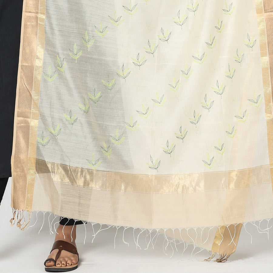 Fine quality special kolaghat kantha work pure maheshwari silk cotton handloom dupatta, designed with contemporary patterns & has been hand embroidered using West Bengal's traditional craft technique of Kantha.