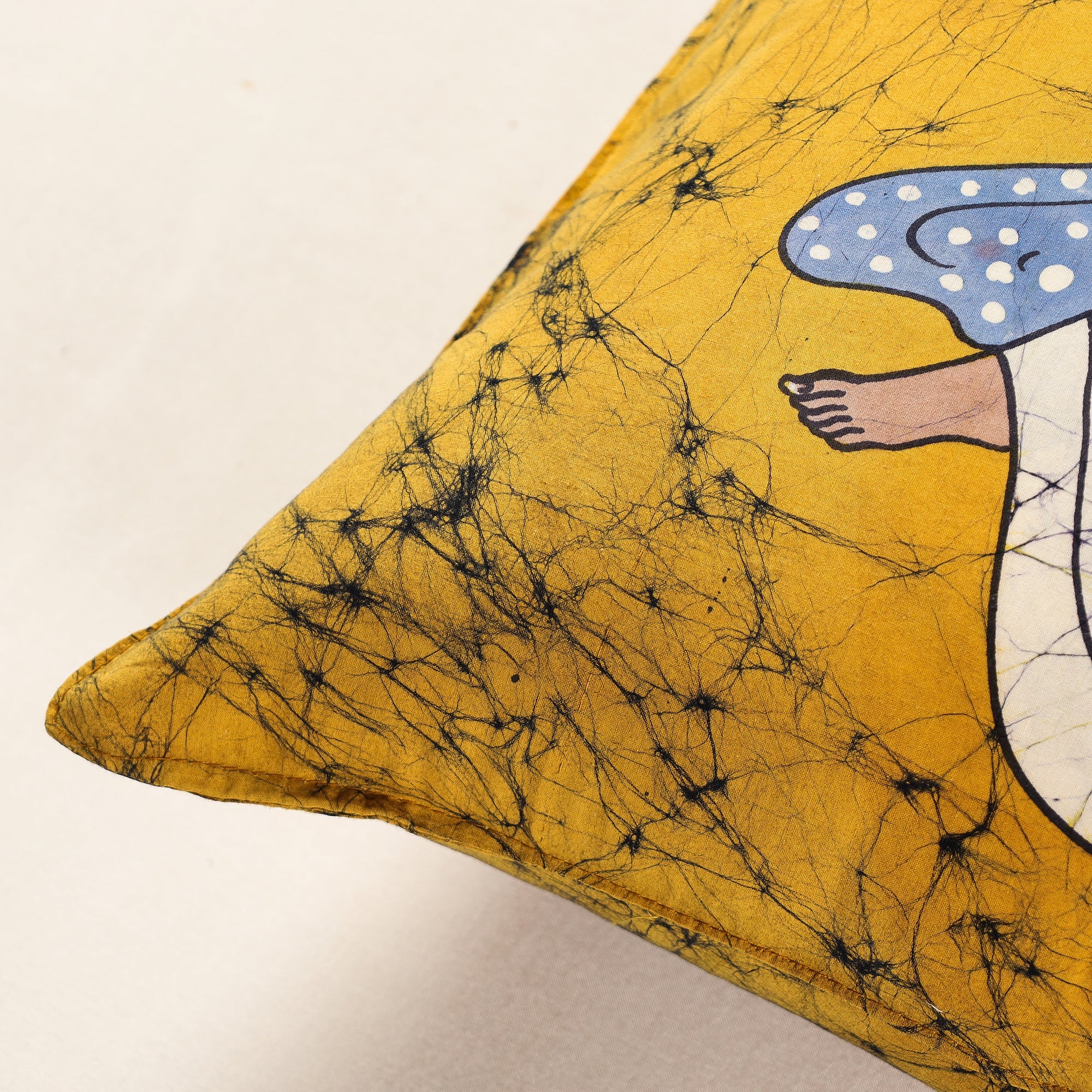 Fine quality hand batik printed pure cotton cushion cover from Ujjain. Batik is a technique of wax-resist dyeing applied to whole cloth, or cloth made using this technique. The traditional designs and motifs in Indian batik are often passed down from one generation to another.