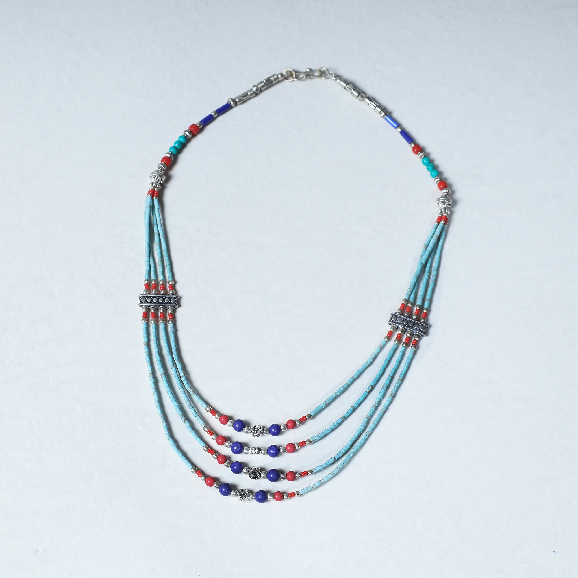 Blue Ethnic Tibetan necklace made from semi-precious stones, turquoise, lapis lazuli, beads with metal & alloy. Handmade in Himalayas. This is the perfect accessory for your Boho and Tribal look!