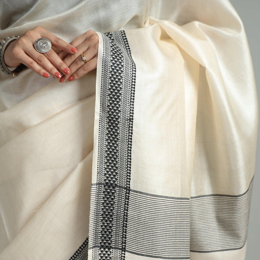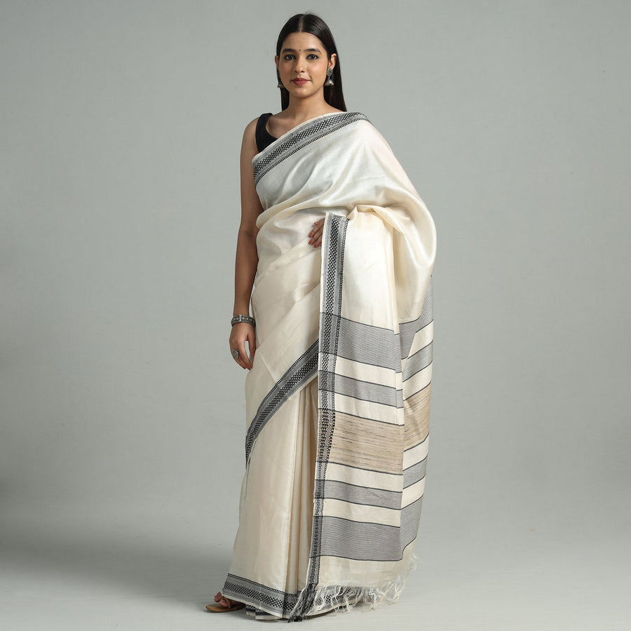 Fine quality traditional vidarbha pure tussar silk handloom saree with woven border . Tussar silk has very smooth texture and sheen of silk & feel of cotton, a perfect blend of both worlds completely suitable for all weathers. Exquisite collection of pure tussar silk sarees woven on silk looms of Vidarbha, Maharashtra, that showcases beautifully handwoven textures.