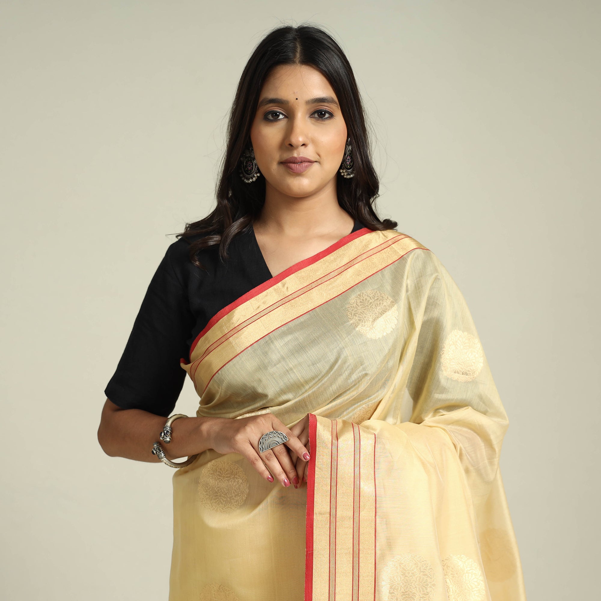Yellow - Handloom Zari Work Pattu Chanderi Silk Saree 29