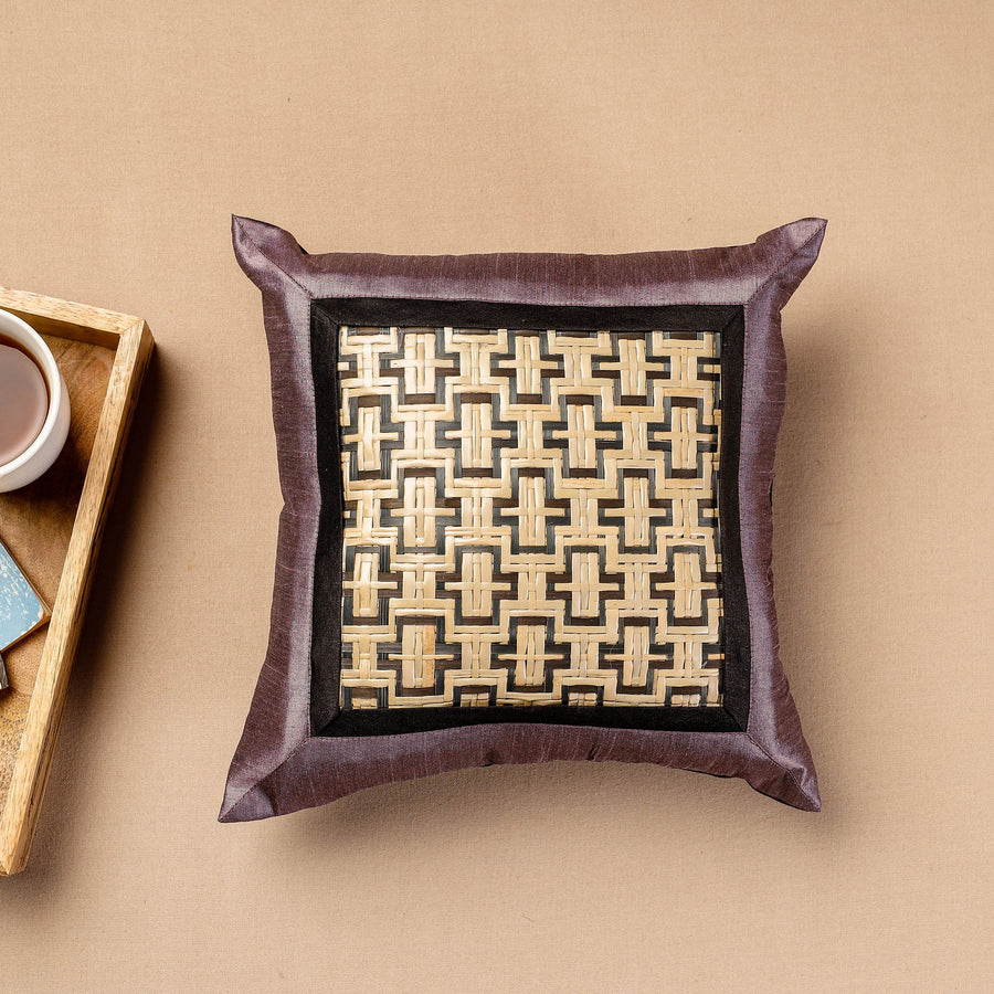 This cushion cover is made up of eco-friendly Sitalpati & dupion silk fabric. Crafted by rural artisans who make each piece by hand using the indigenous locally available sitalpati (cane) using traditional methods & this helps them sustain economically.