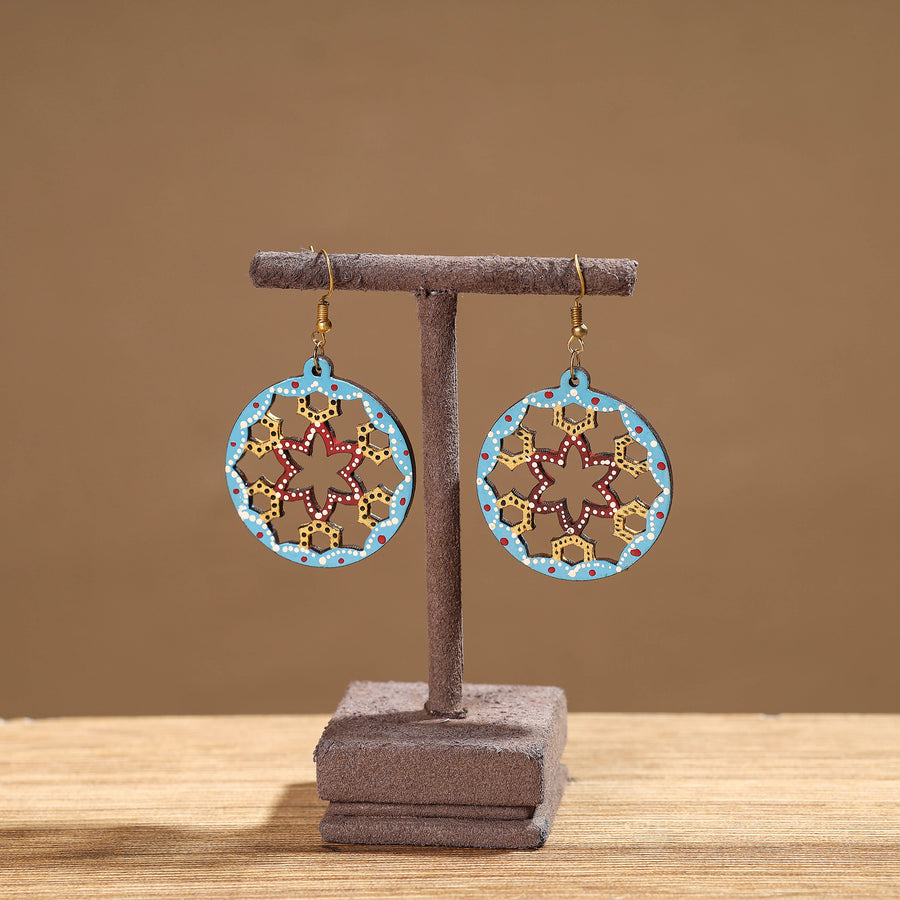 Beautifully multicolor handcrafted wooden earrings made of mdf wood with tikuli handpainted miniature painting on both sides. (oil colours used) Can match any type of outfit.