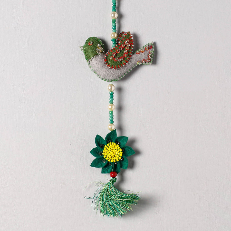 | Material | Handmade felt & beadwork wall hanging. This handmade hanging will be spectacular as Diwali decor to be placed anywhere in the house. It's contrast coloring accentuates the beauty of your home. |
