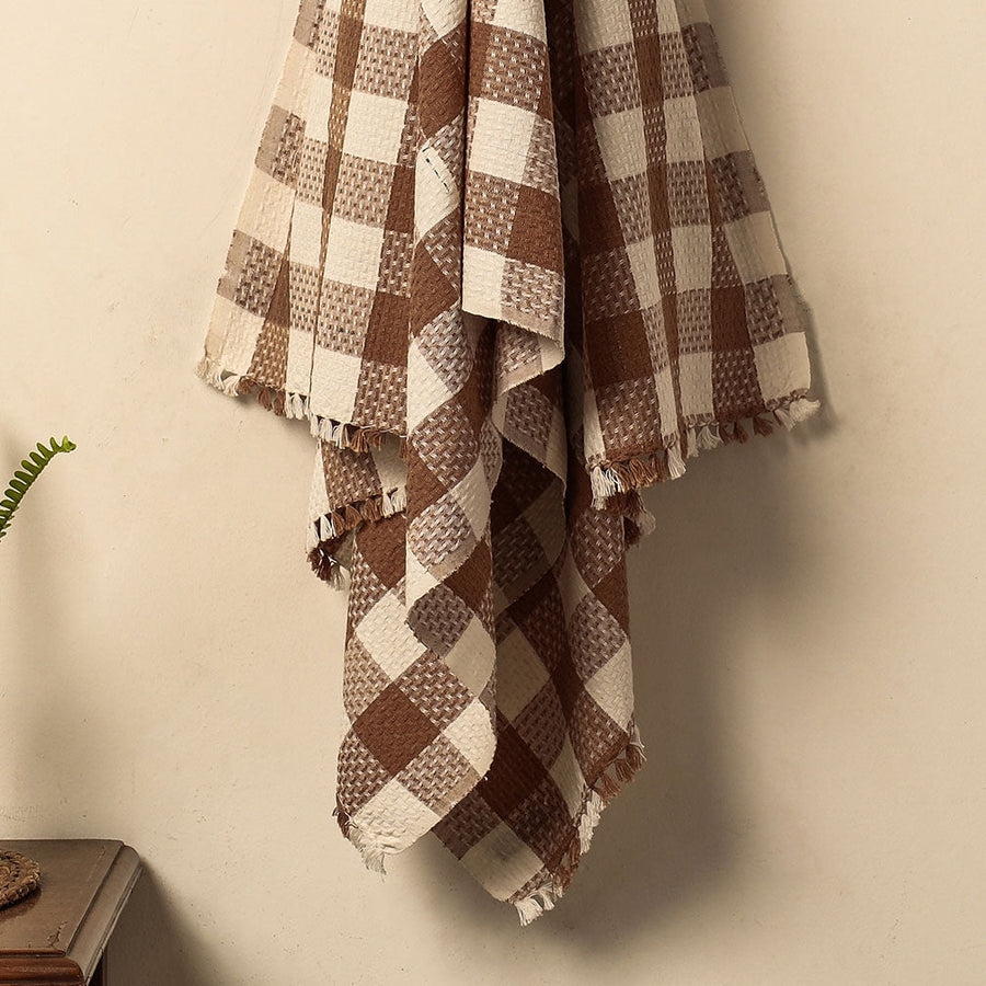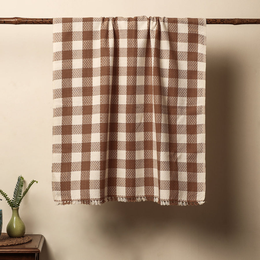 Fine quality handwoven cotton towel from Alampur, Telangana. The handloom experience (soft, comfortable and durable) is due to the human handling of the yarn in the weaving process. As a result, yarn and the fabric are much less stressed and damaged. Hand woven cotton is known for its breathability as compared to mill made cotton.
