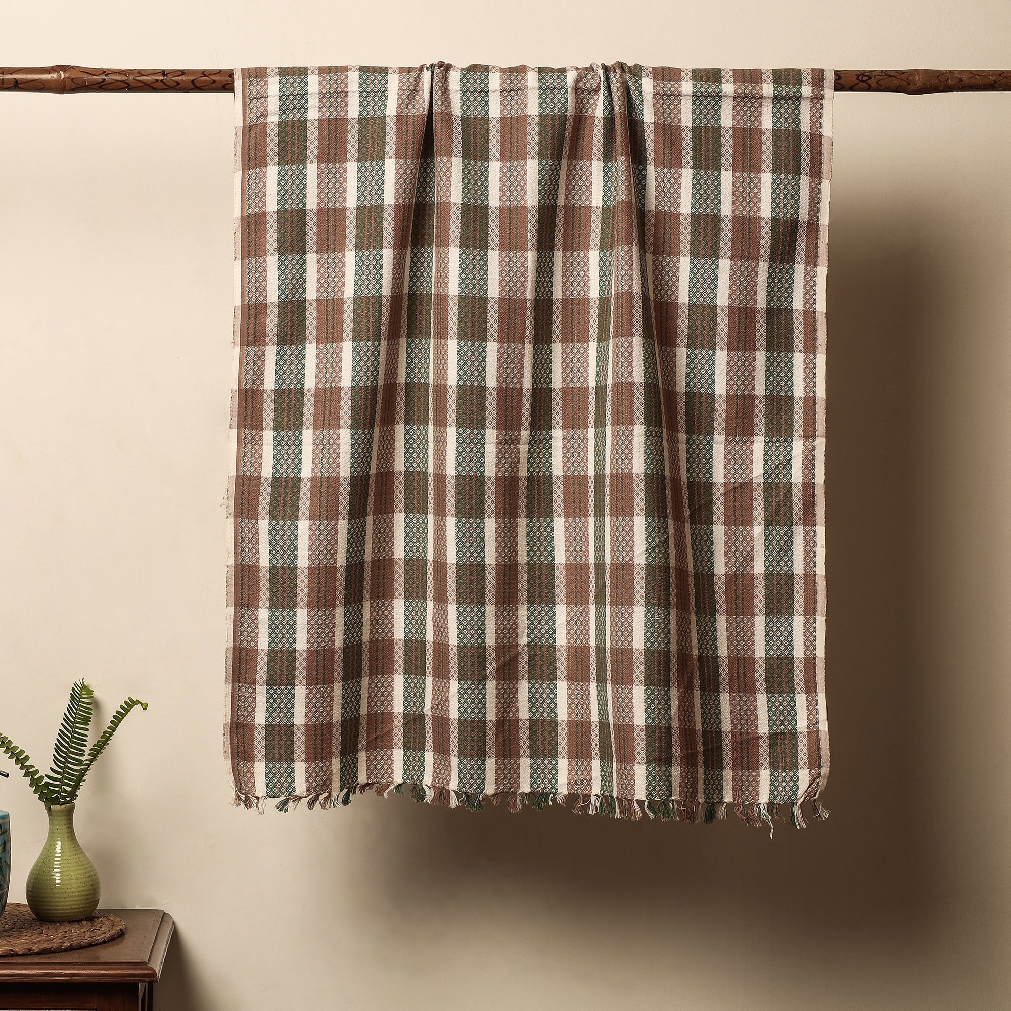 Fine quality handwoven cotton towel from Alampur, Telangana. The handloom experience (soft, comfortable and durable) is due to the human handling of the yarn in the weaving process. As a result, yarn and the fabric are much less stressed and damaged. Hand woven cotton is known for its breathability as compared to mill made cotton.