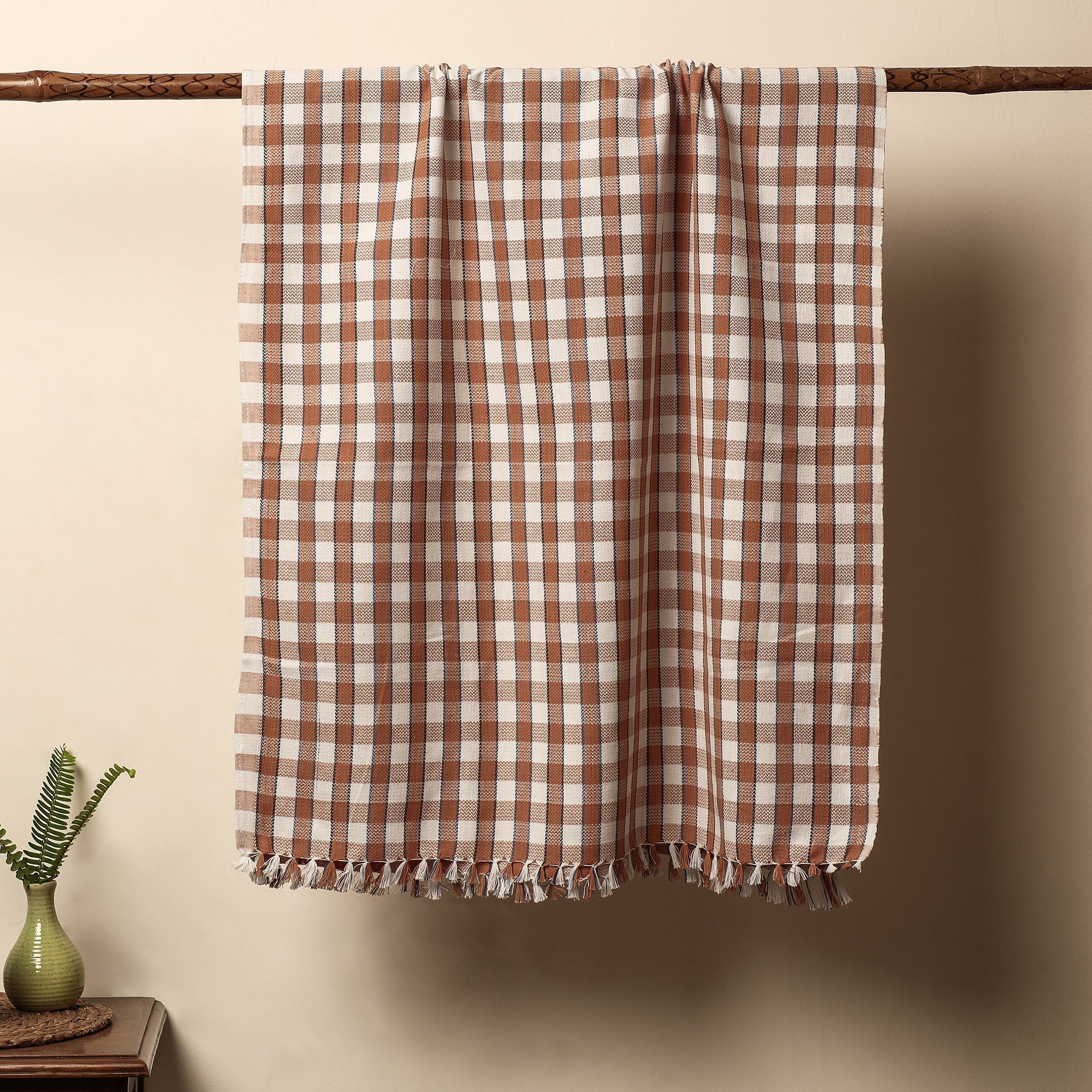 Fine quality pure handloom weave cotton towel from Nidubrolu, Andhra Pradesh. The handloom experience (soft, comfortable and durable) is due to the human handling of the yarn in the weaving process. As a result, yarn and the fabric are much less stressed and damaged. Hand woven cotton is known for its breathability as compared to mill made cotton.