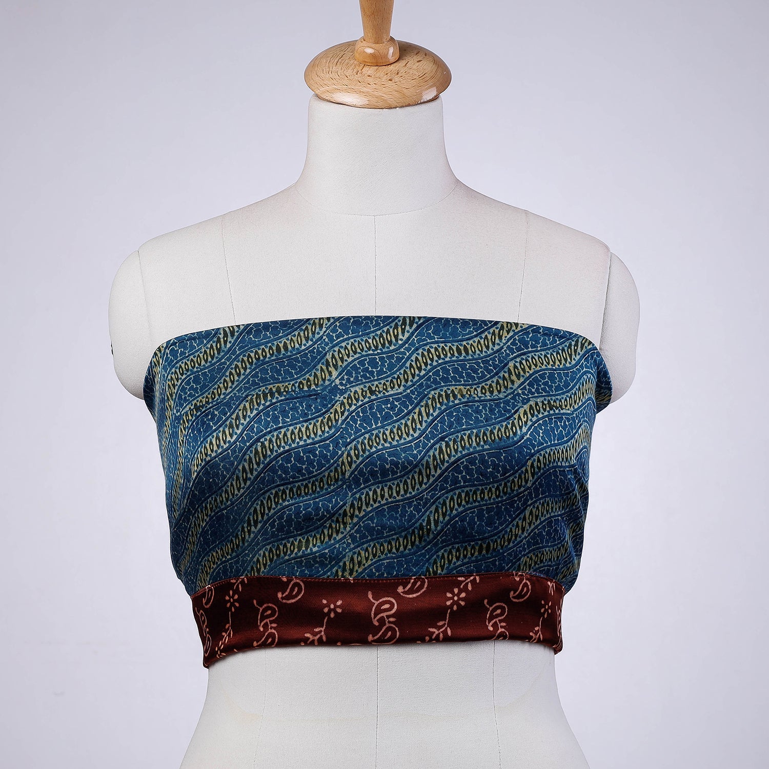Fine quality kutch block printing blouse material made from mix & matched modal silk fabrics & textured with handmade textiles of India. This mix & match blouse material will go with almost all of your sarees & enhance your look.