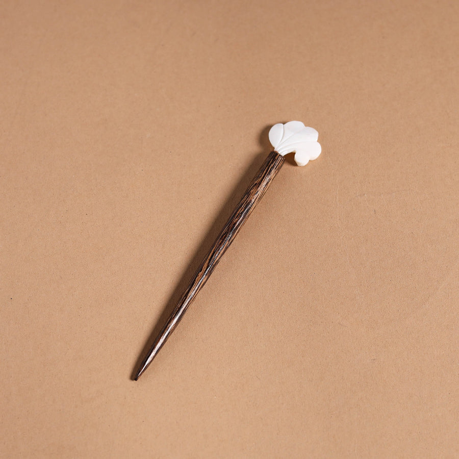 Handcrafted wooden juda stick with natural seashells by Kinkar Ghosh. This unique and lovely juda stick is made of wood and mother-of-pearl shell. It's perfect for you to wear on many occasions, such as parties, weddings, dancing, etc.