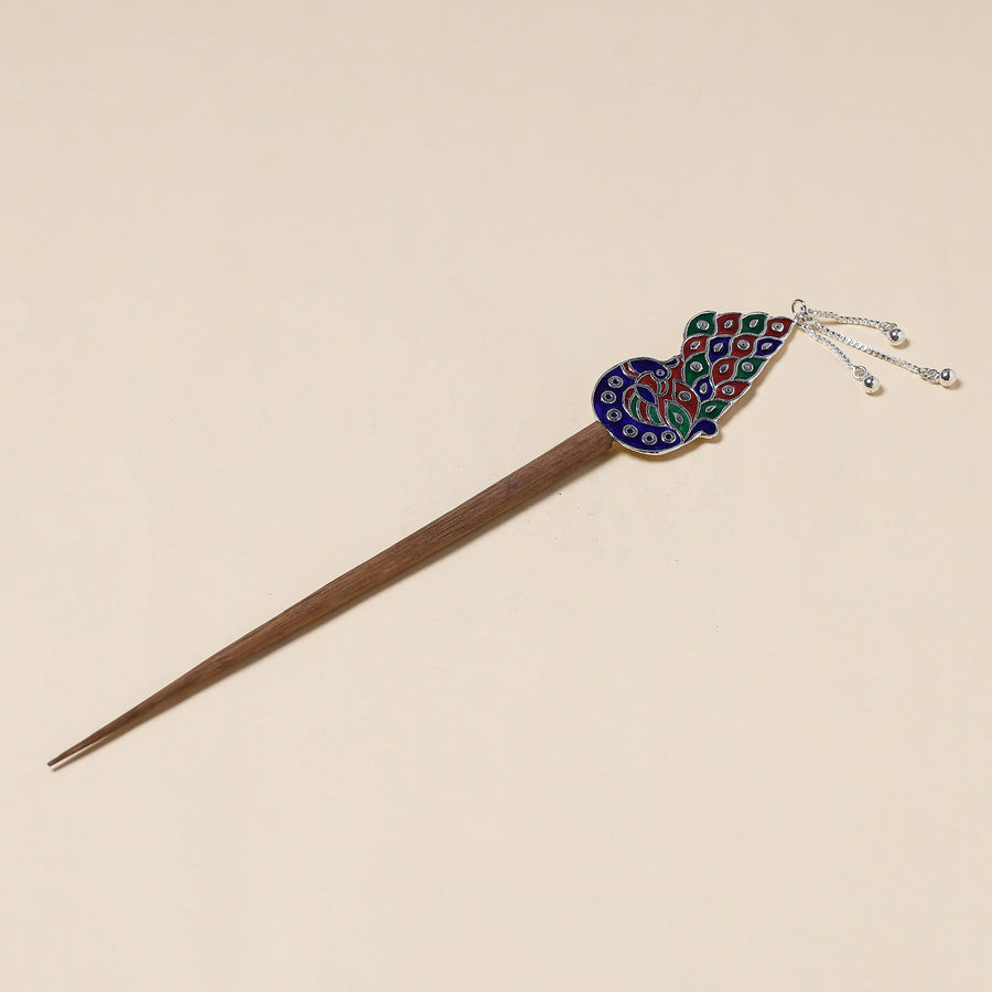 Made with wooden juda stick, bronze alloy and traditional enameling. This beautifully handcrafted paka meenakari wooden juda stick by Sukhomoy Mukherjee are the perfect match to any ensemble!