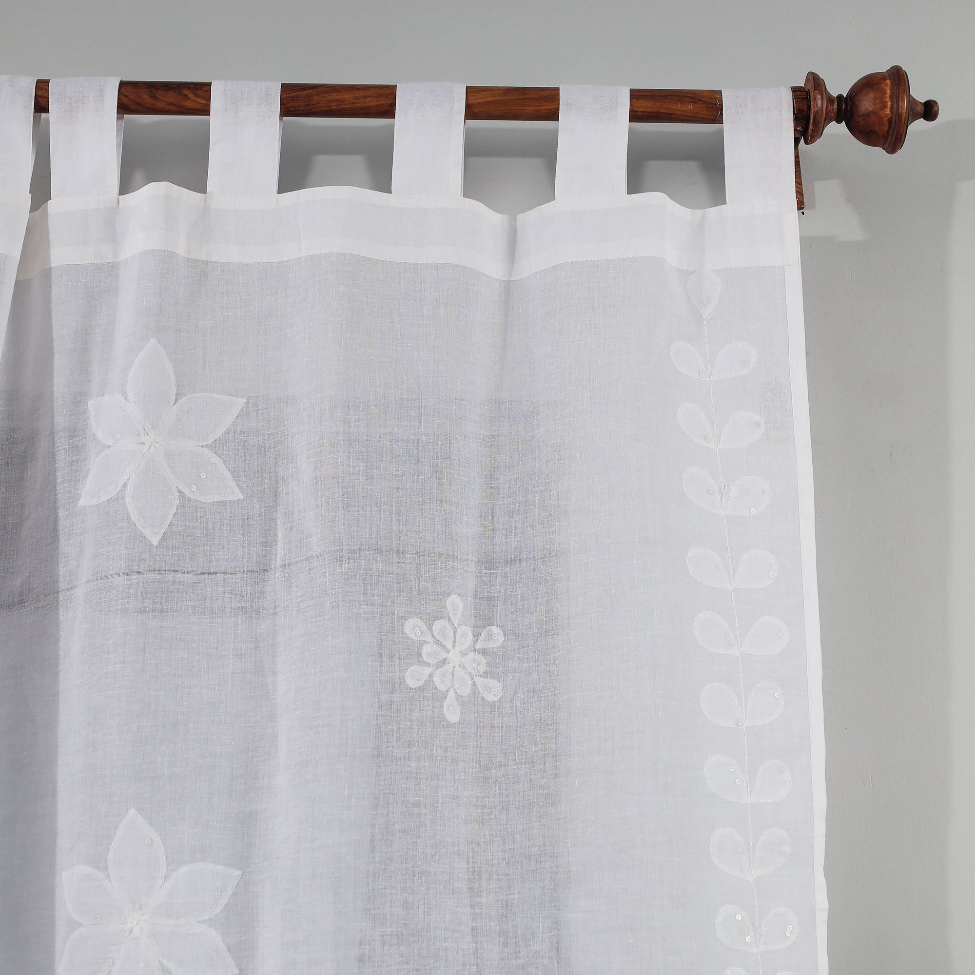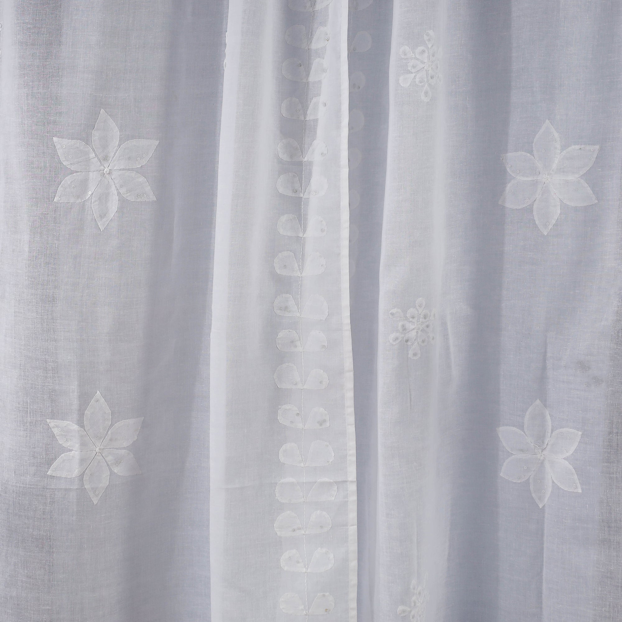 White - Applique Flower Cutwork Cotton Door Curtain from Rampur (7 x 3 feet) (single piece)