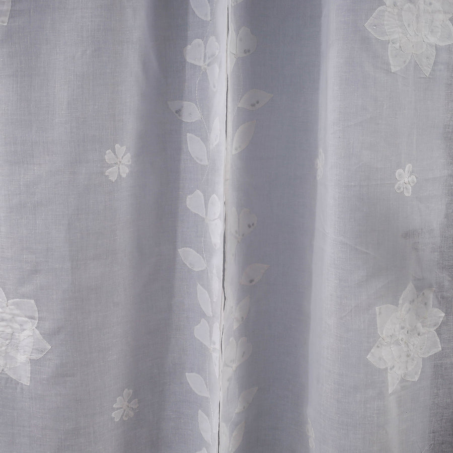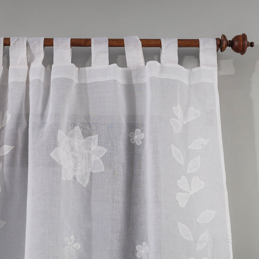 White - Applique Flower Cutwork Cotton Door Curtain from Rampur (7 x 3 feet) (single piece)
