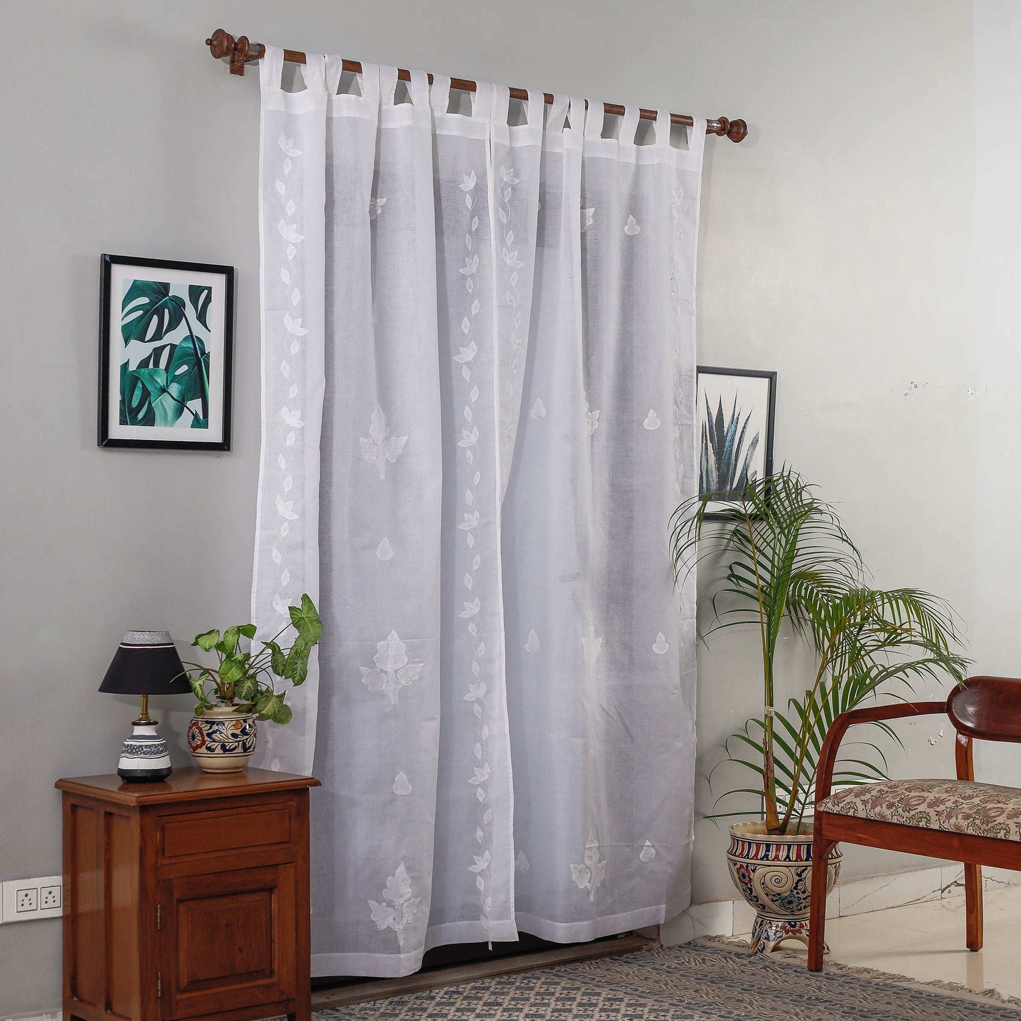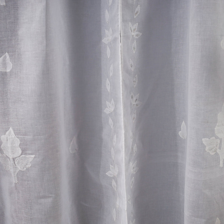 White - Applique Flower Cutwork Cotton Door Curtain from Rampur (7 x 3 feet) (single piece)