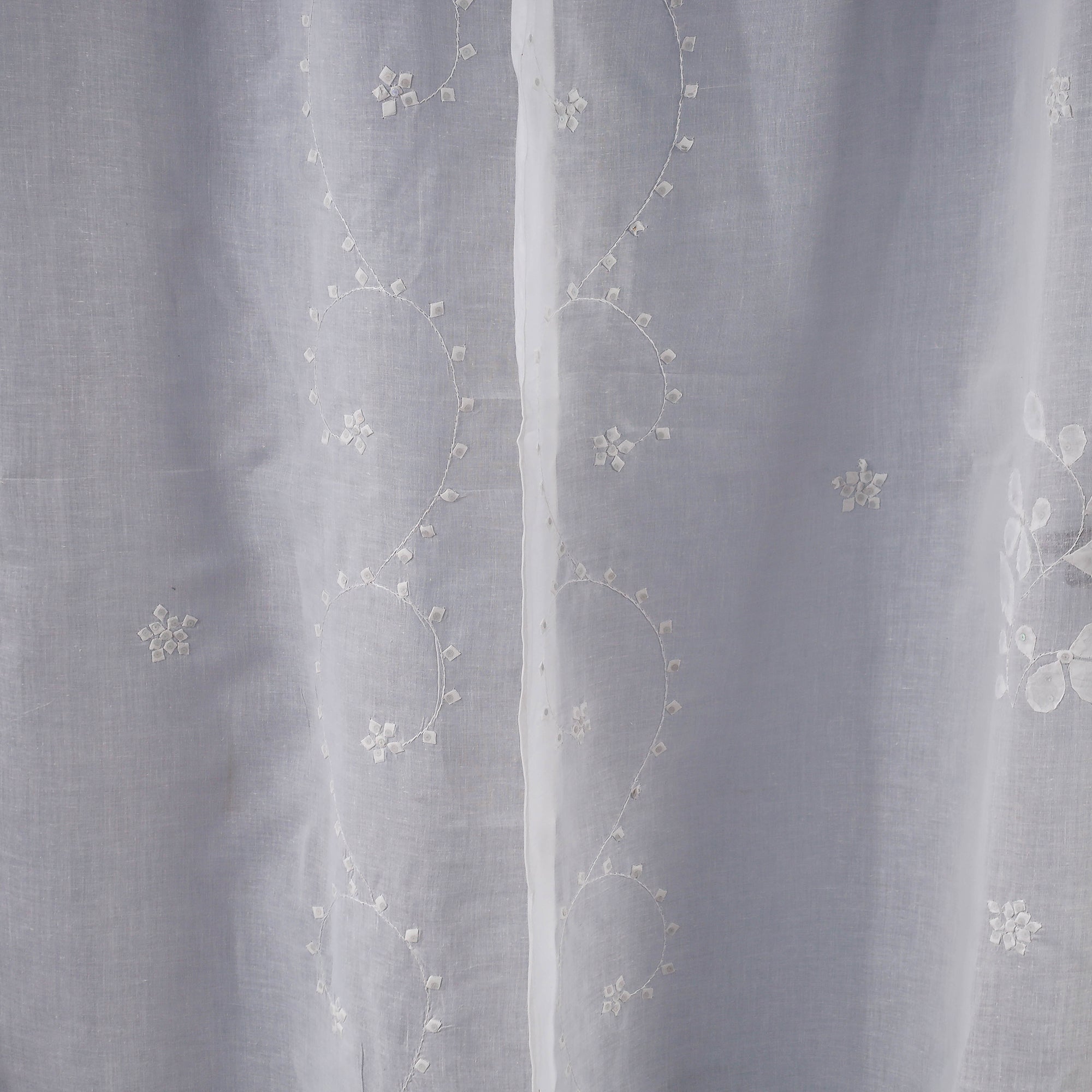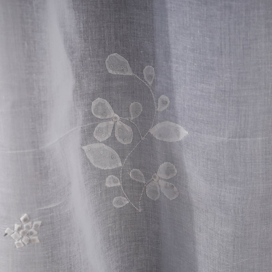 White - Applique Flower Cutwork Cotton Door Curtain from Rampur (7 x 3 feet) (single piece)
