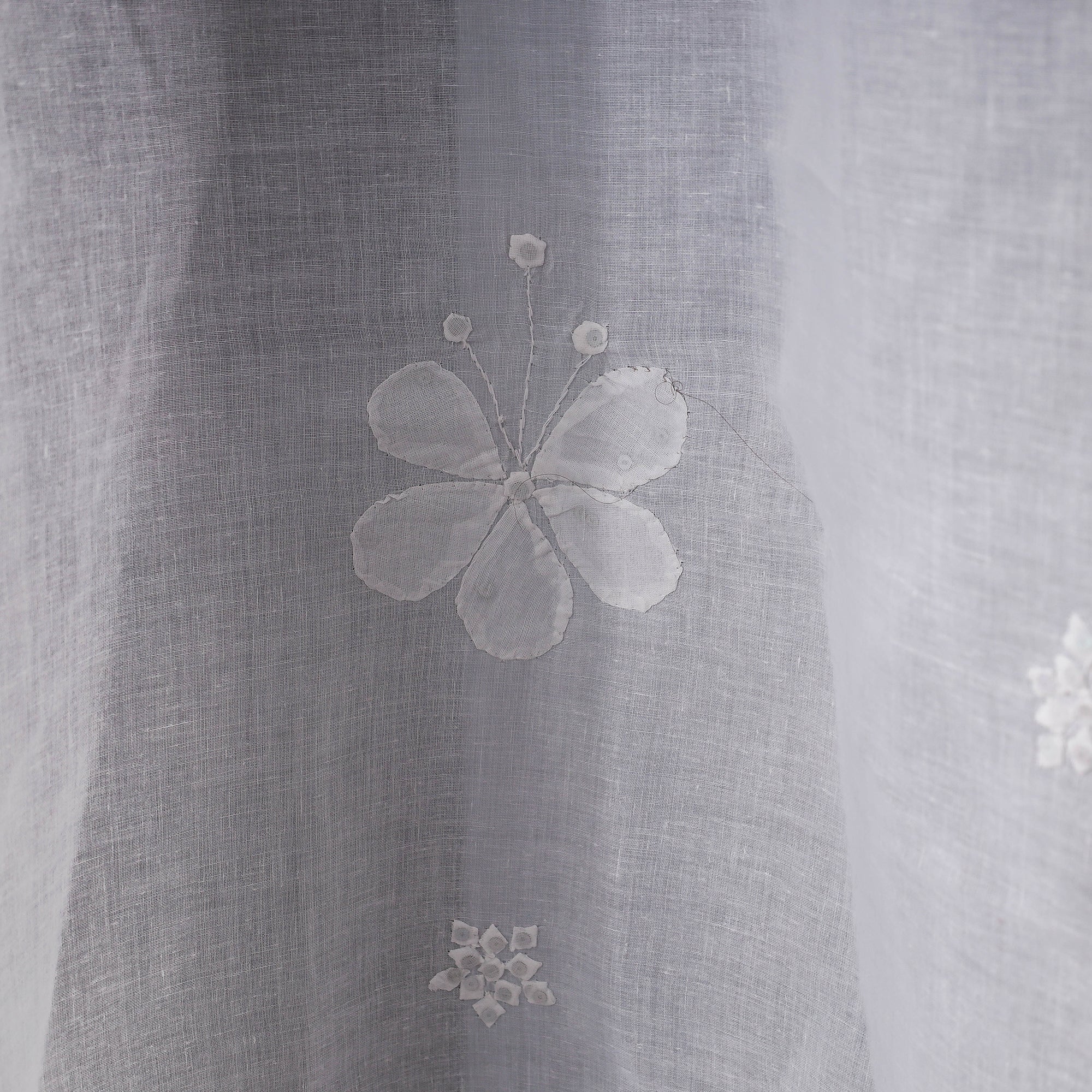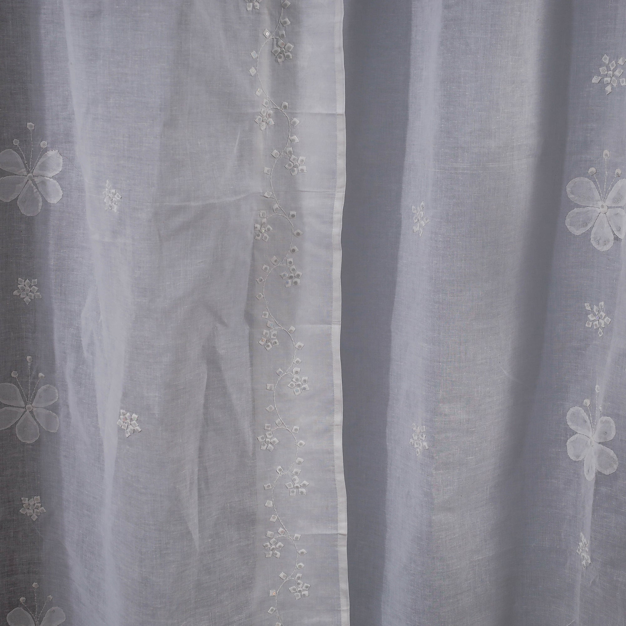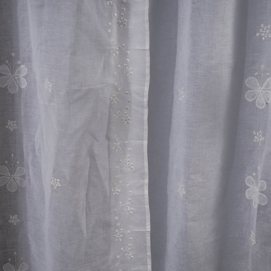 White - Applique Flower Cutwork Cotton Door Curtain from Rampur (7 x 3 feet) (single piece)