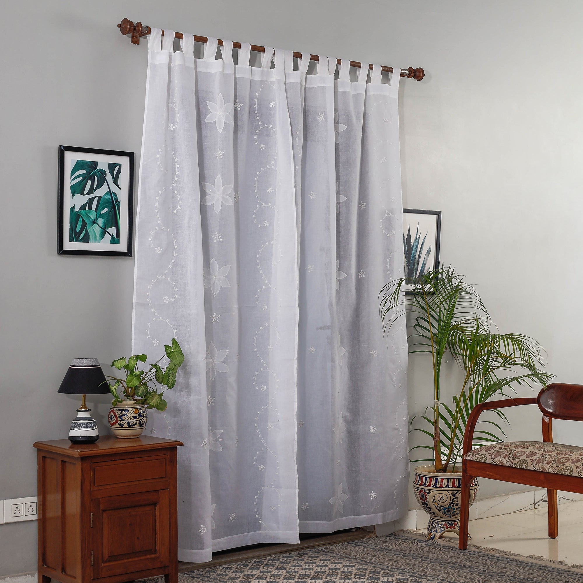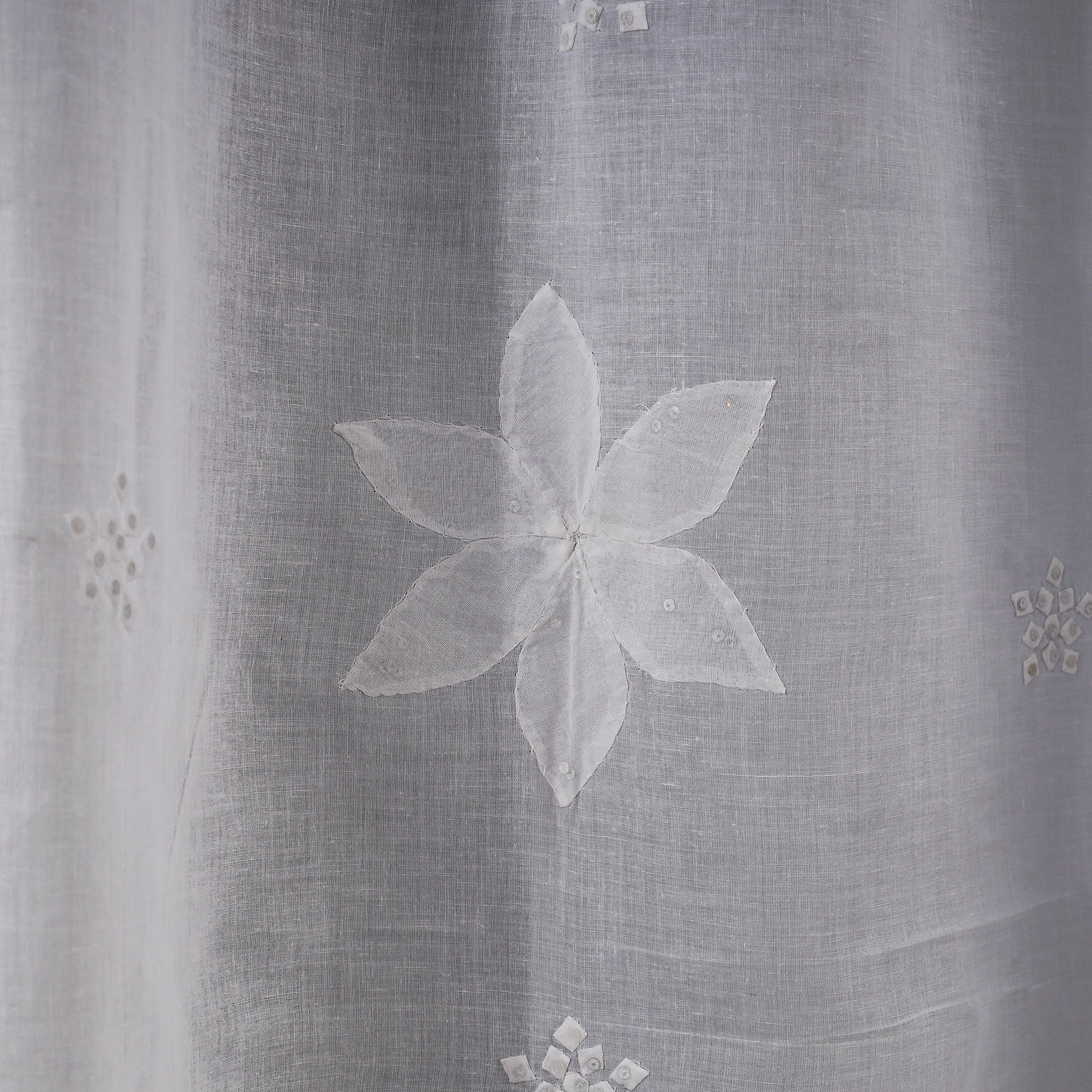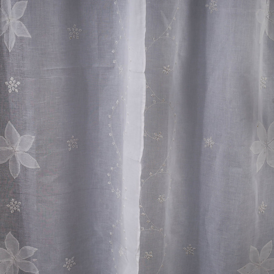 White - Applique Flower Cutwork Cotton Door Curtain from Rampur (7 x 3 feet) (single piece)