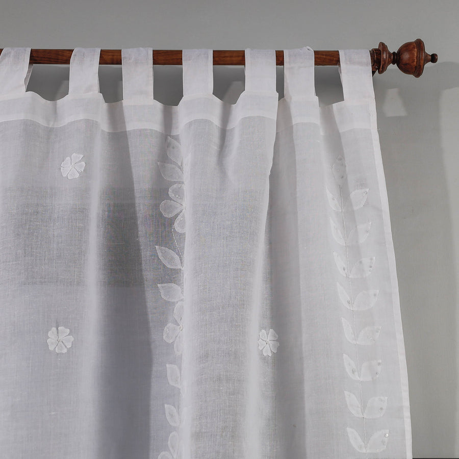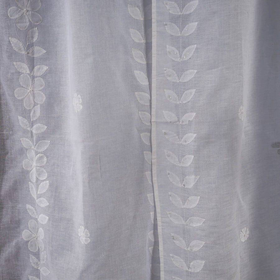 White - Applique Flower Cutwork Cotton Door Curtain from Rampur (7 x 3 feet) (single piece)