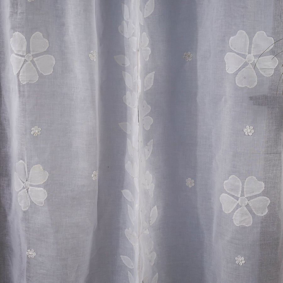 White - Applique Flower Cutwork Cotton Door Curtain from Rampur (7 x 3 feet) (single piece)