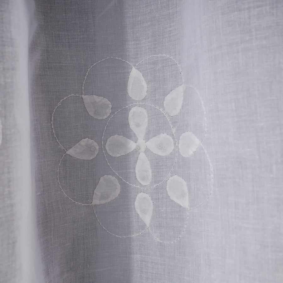 White - Applique Flower Cutwork Cotton Door Curtain from Rampur (7 x 3 feet) (single piece)