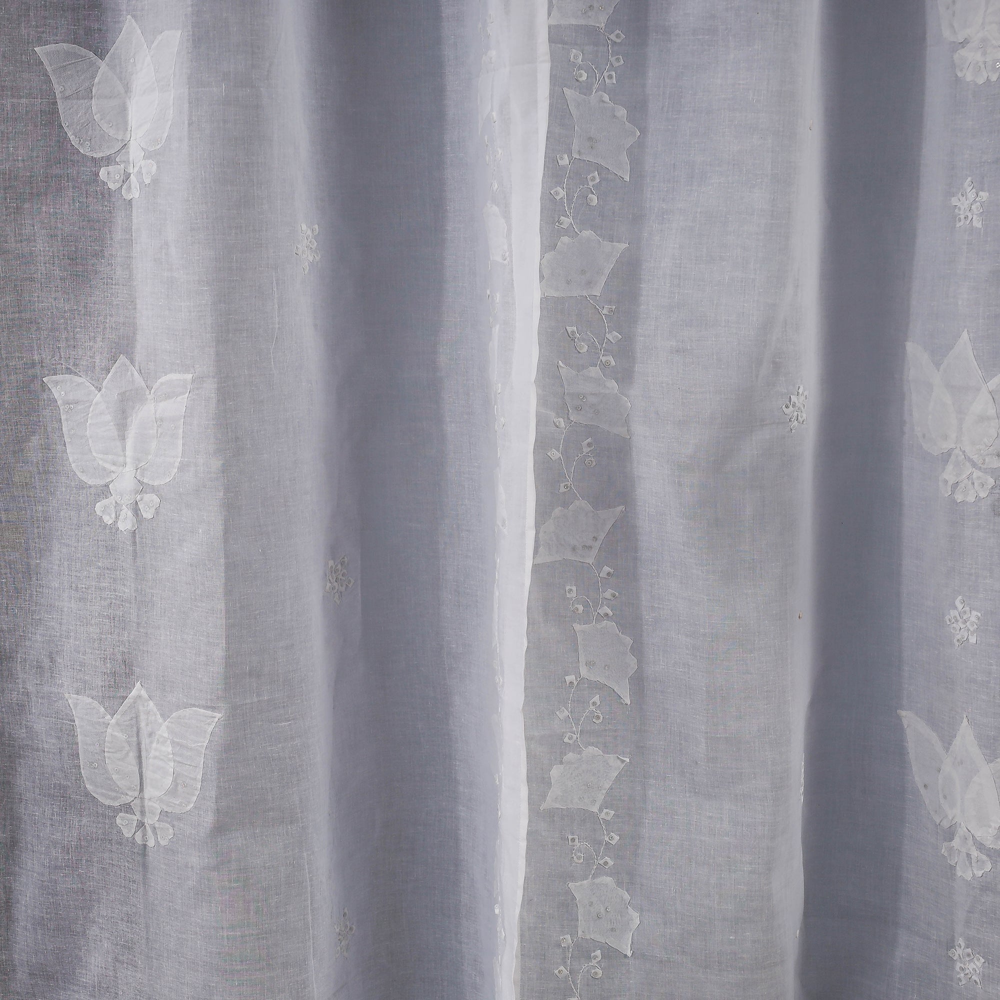 White - Applique Flower Cutwork Cotton Door Curtain from Rampur (7 x 3 feet) (single piece)