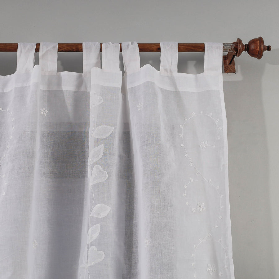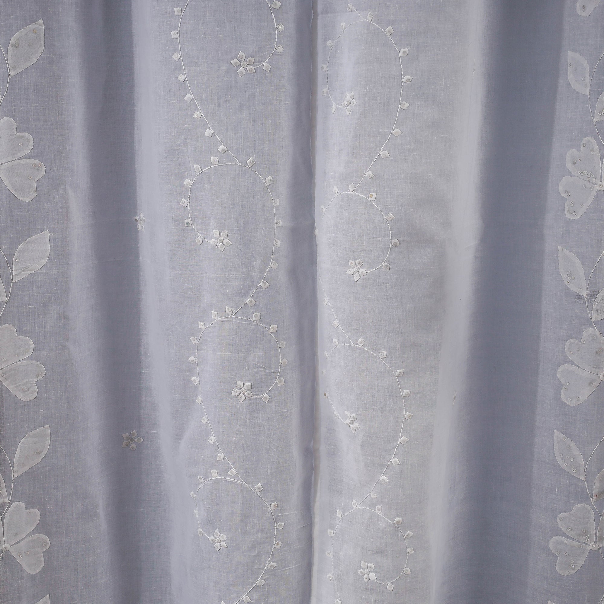 White - Applique Flower Cutwork Cotton Door Curtain from Rampur (7 x 3 feet) (single piece)