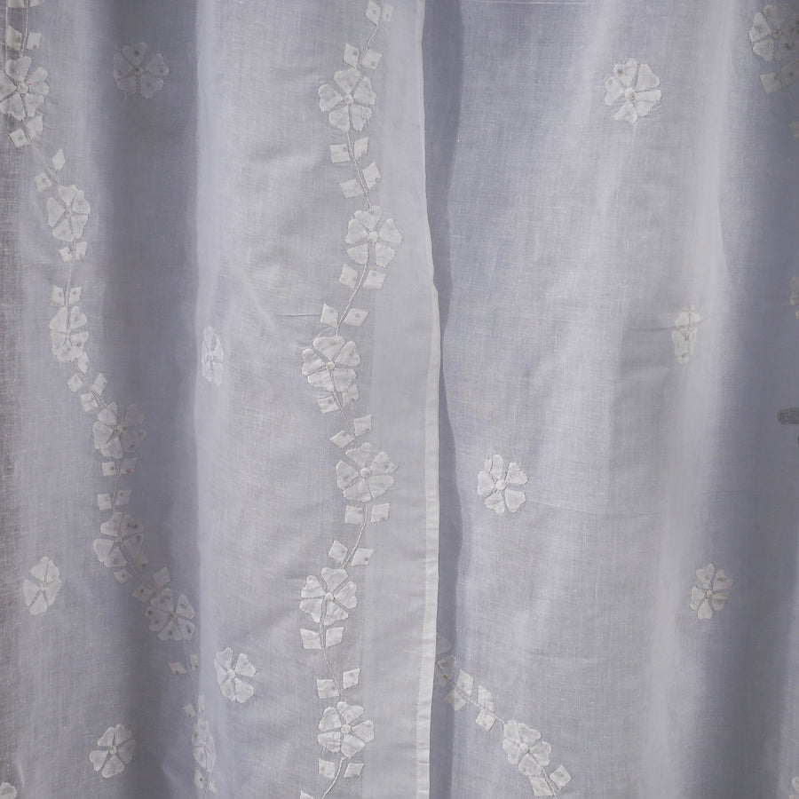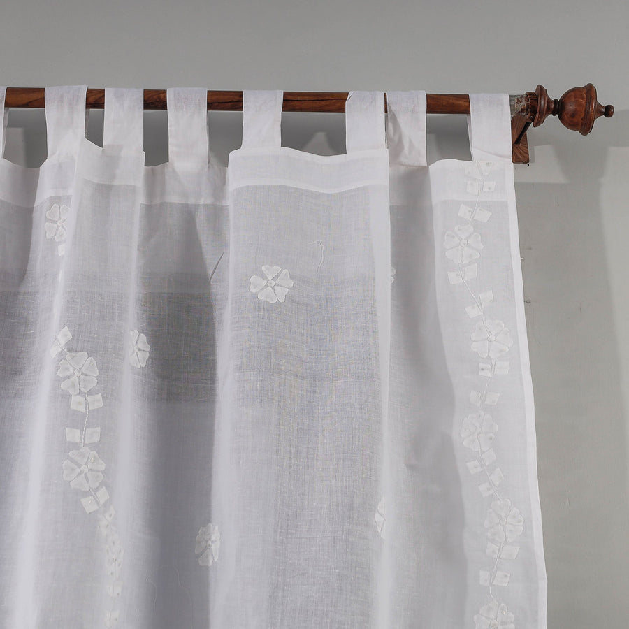 White - Applique Flower Cutwork Cotton Door Curtain from Rampur (7 x 3 feet) (single piece)