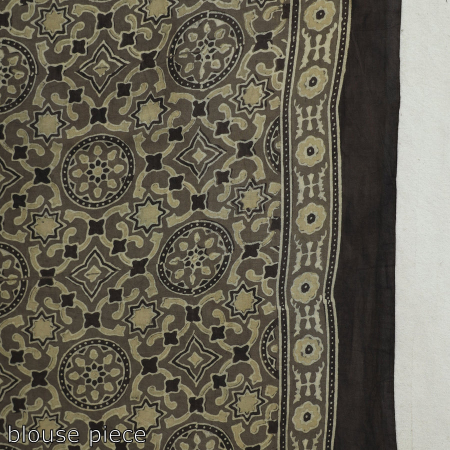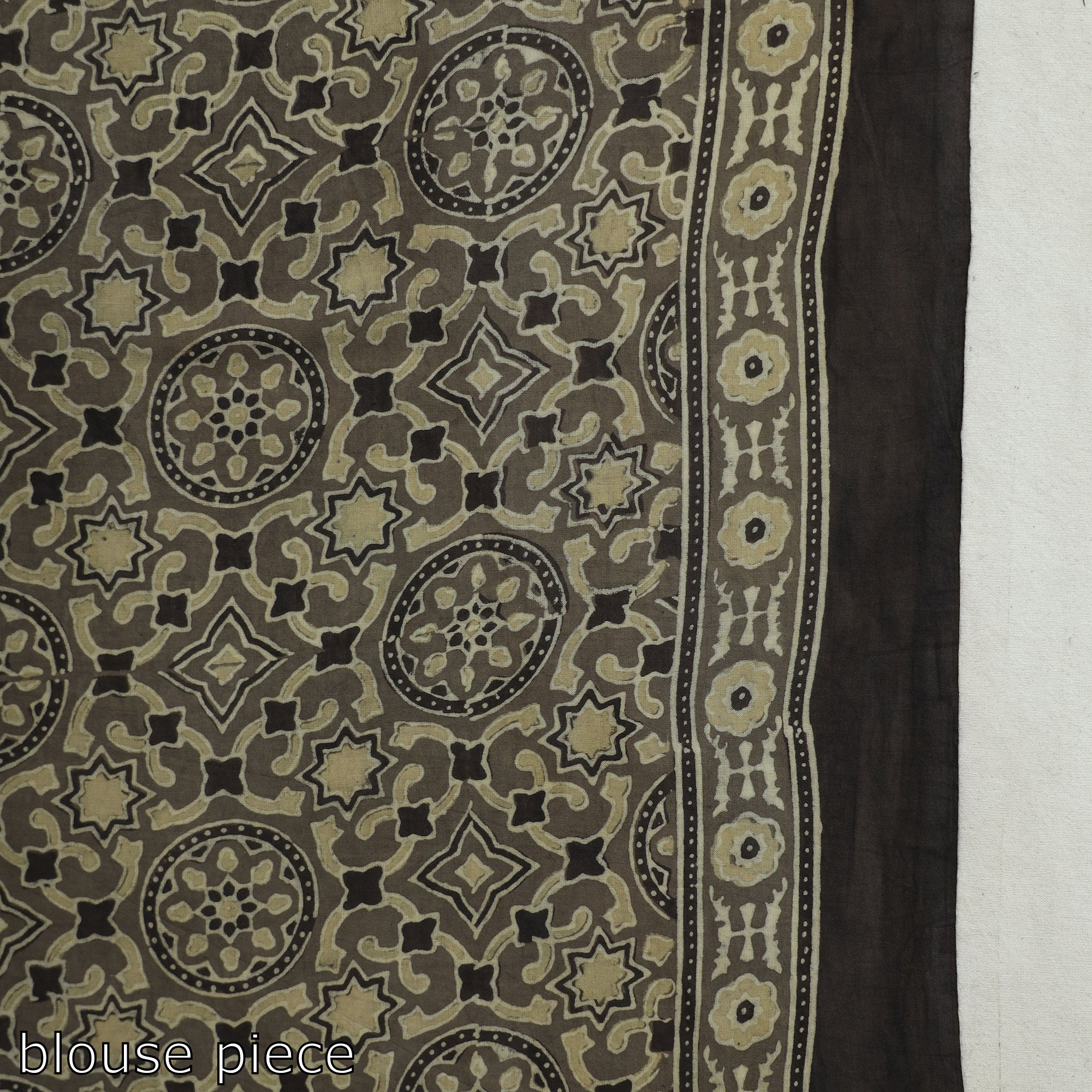 This natural dyed grey hand block print cotton ajrakh saree showcases the timeless craftsmanship of the Kutch artisans. Made with natural dyes using a 4,500-year-old resist-dyeing technique, each saree tells a story of heritage and skill. The Ajrakh process is intricate, involving multiple stages of printing and dyeing to create its iconic geometric motifs. Perfect for special occasions, this saree offers elegance with sustainability. Celebrate culture and artistry with every drape.